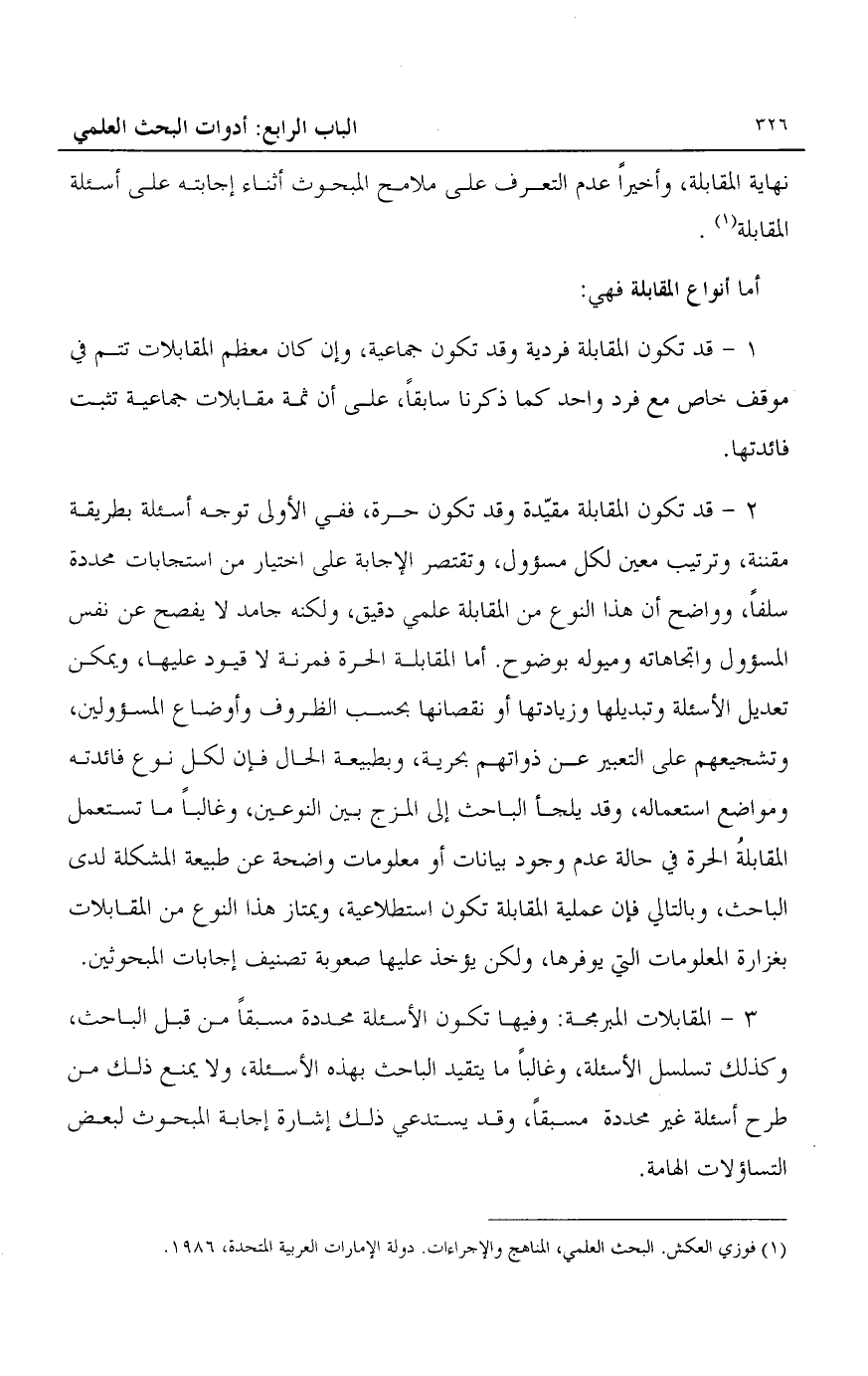 1 فوزي العكش: البحث العلمي، المناهج والإجراءات. دولة الإمارات العربية المتحدة، 1986.