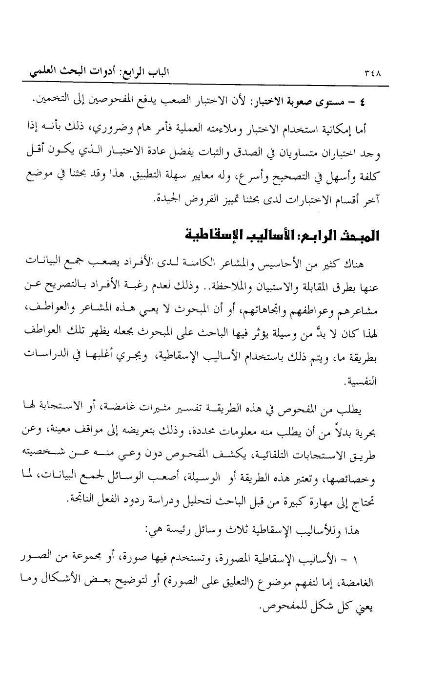 هناك كثير من الأحاسيس والمشاعر الكامنة لدى الأفراد يصعب جمع البيانات عنها بطرق المقابلة والاستبيان والملاحظة. وذلك لعدم رغبة الأفراد بالتصريح عن مشاعرهم وعواطفهم واتجاهاتهم، أو أن المبحوث لا يعي هذه المشاعر والعواطف، لهذا كان لا بد من وسيلة يؤثر فيها الباحث على المبحوث بجعله يظهر تلك العواطف بطريقة ما، ويتم ذلك باستخدام الأساليب الإسقاطية، ويجري أغلبها في الدراسات النفسية.