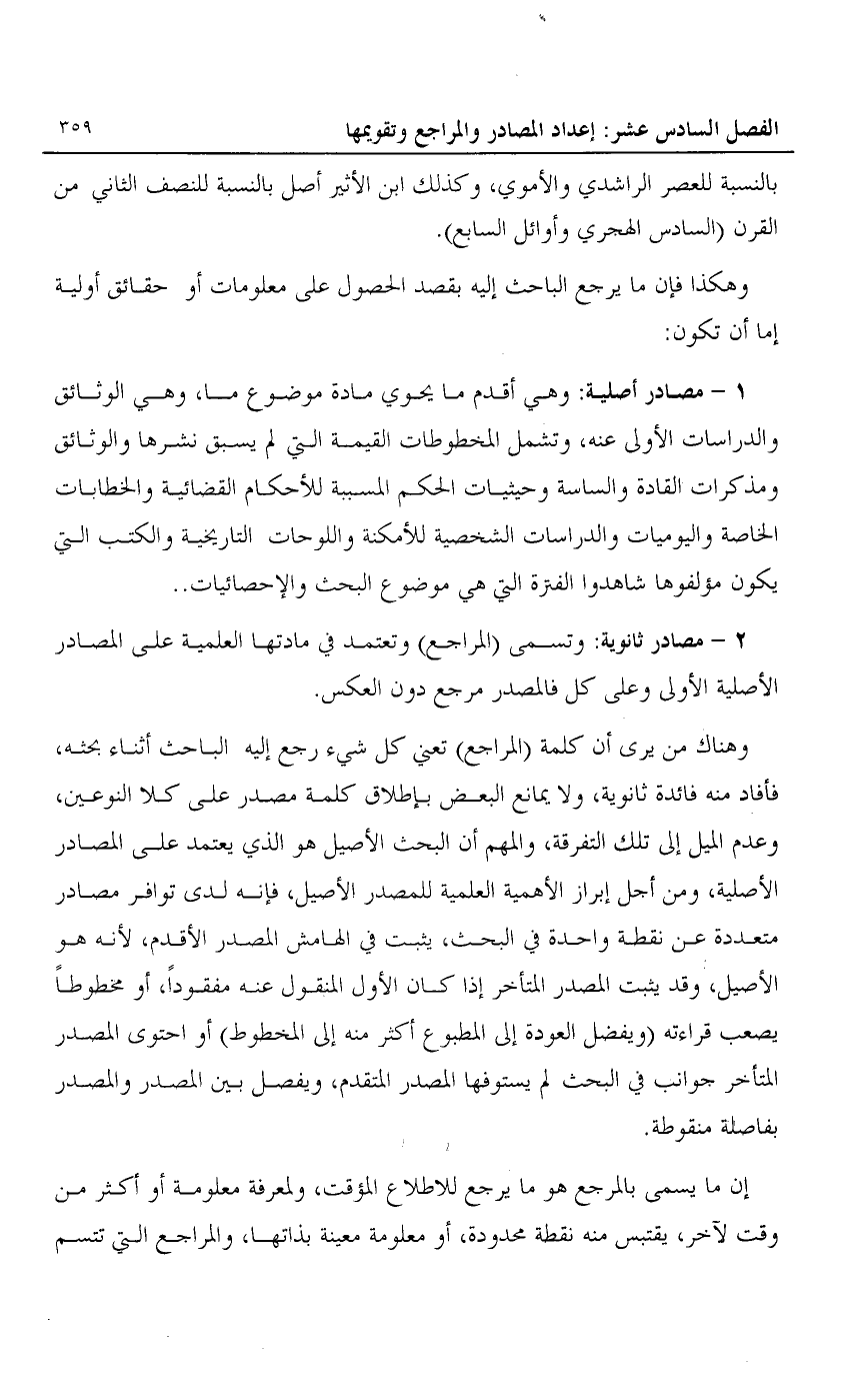 2- مصادر ثانوية: وتسمى "المراجع" وتعتمد في مادتها العلمية على مصادر الأصلية الأولى وعلى كل فالمصدر مرجع دون العكس.