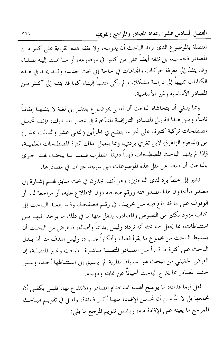 لعل فيما قدمناه ما يوضح أهمية استخدام المصادر والانتفاع بها، فليس يكفي أن نجمعها بل لا بد من أن نحسن الإفادة منها أكبر فائدة، ولعل في تقويم الباحث للمرجع ما يعينه على الإفادة منه، ويشمل تقويم المرجع ما يلي:
