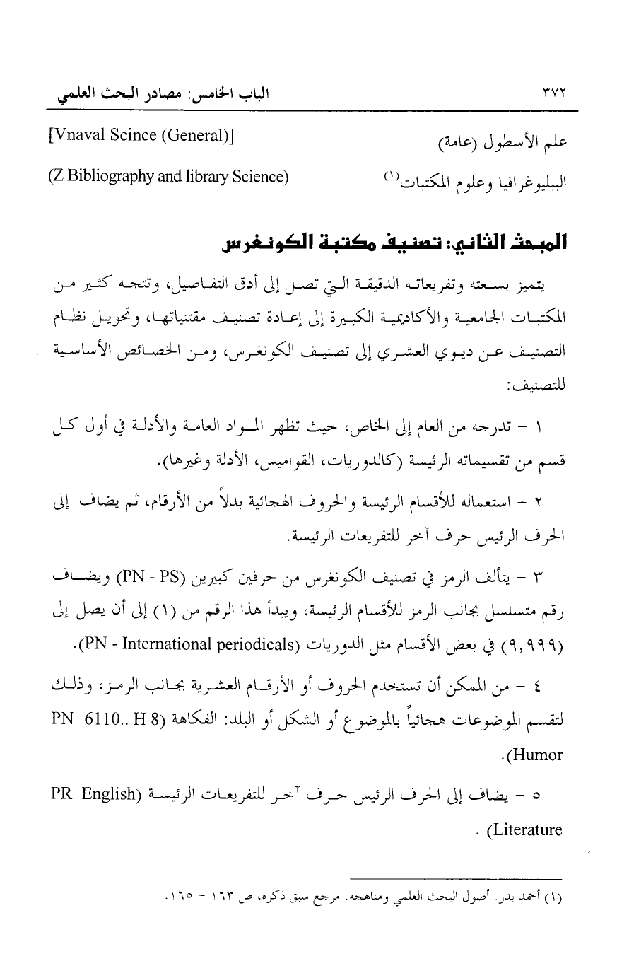 المبحث الثاني: تصنيف مكتبة الكونغرس