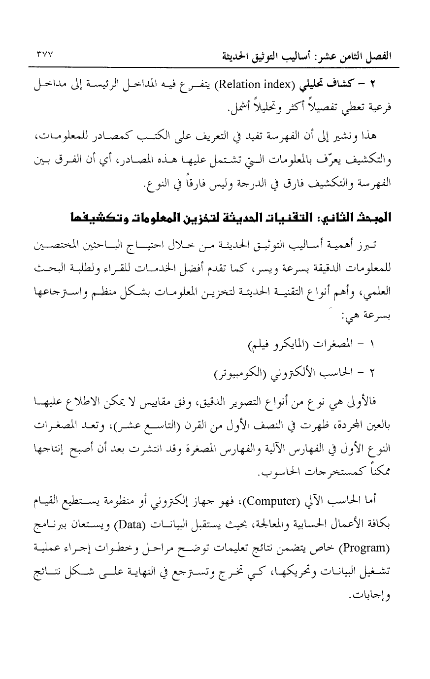 المبحث الثاني: التقنيات الحديثة لتخزين المعلومات وتكشيفها