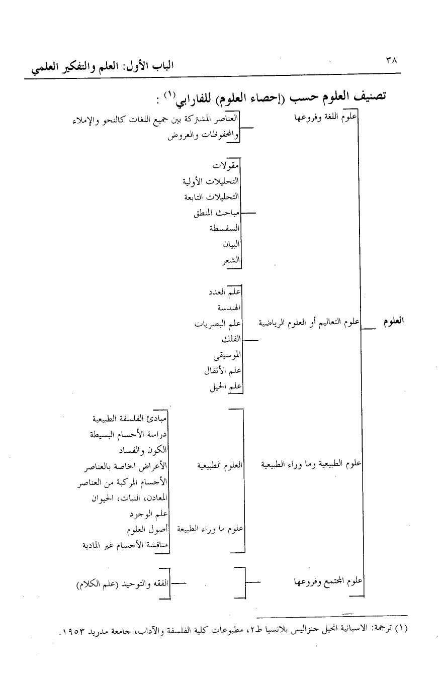 تصنيف العلوم حسب "إحصاء العلوم" للفارابي 1: