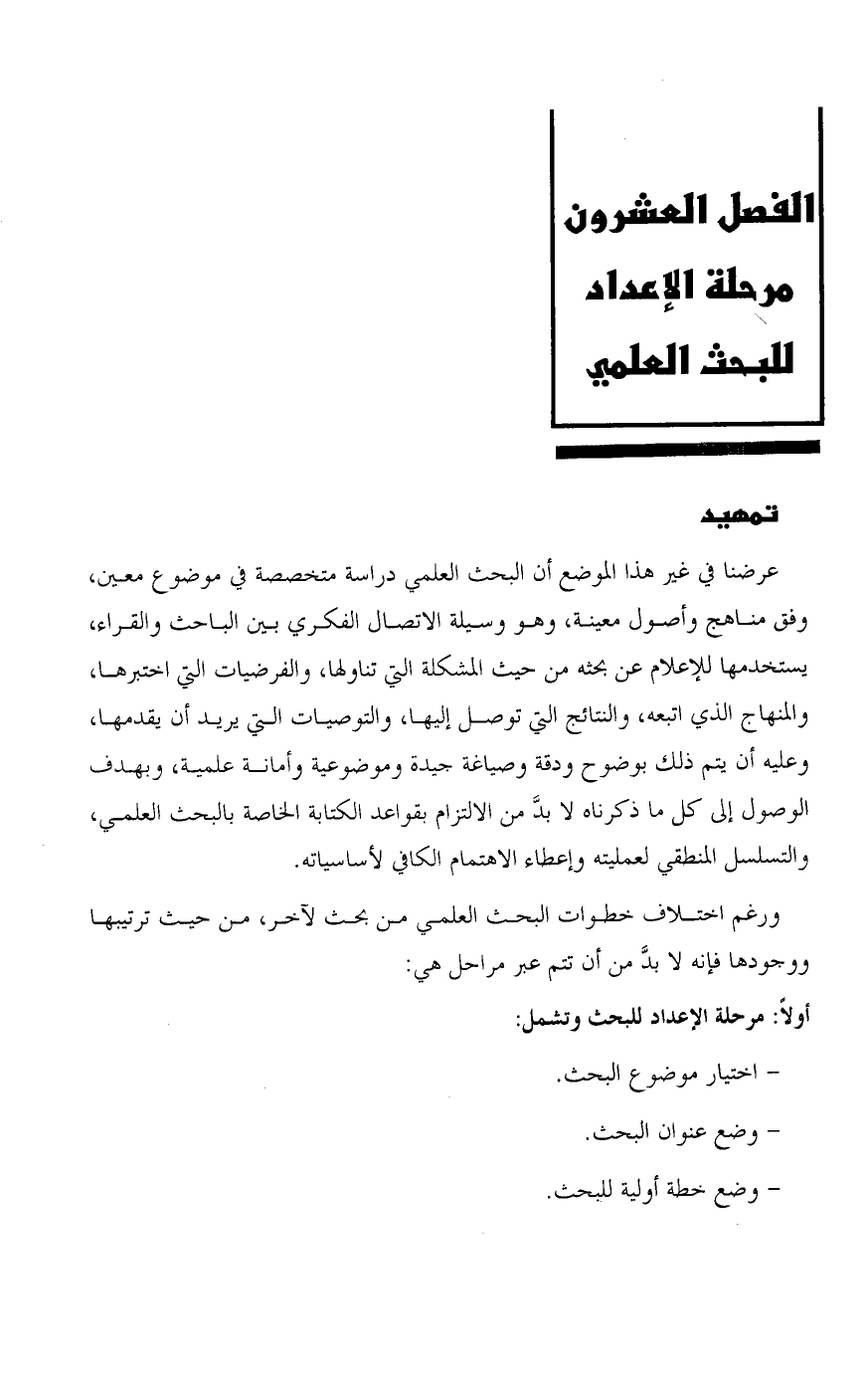 الفصل العشرون: مرحلة الإعداد للبحث العلمي