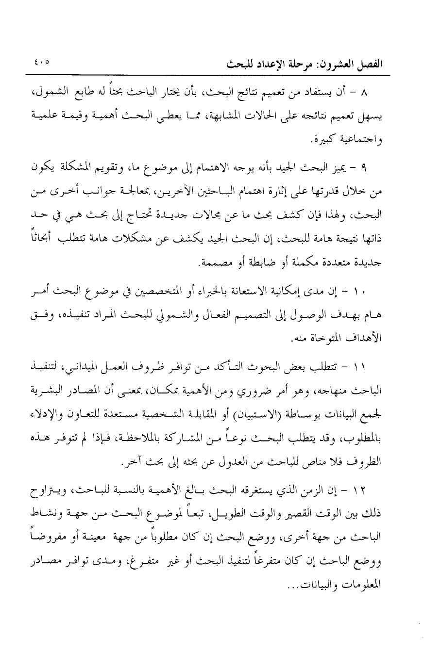 10- إن مدى إمكانية الاستعانة بالخبراء أو المتخصصين في موضوع البحث أمر هام بهدف الوصول إلى التصميم الفعال والشمولي للبحث المراد تنفيذه، وفق الأهداف المتوخاة منه.