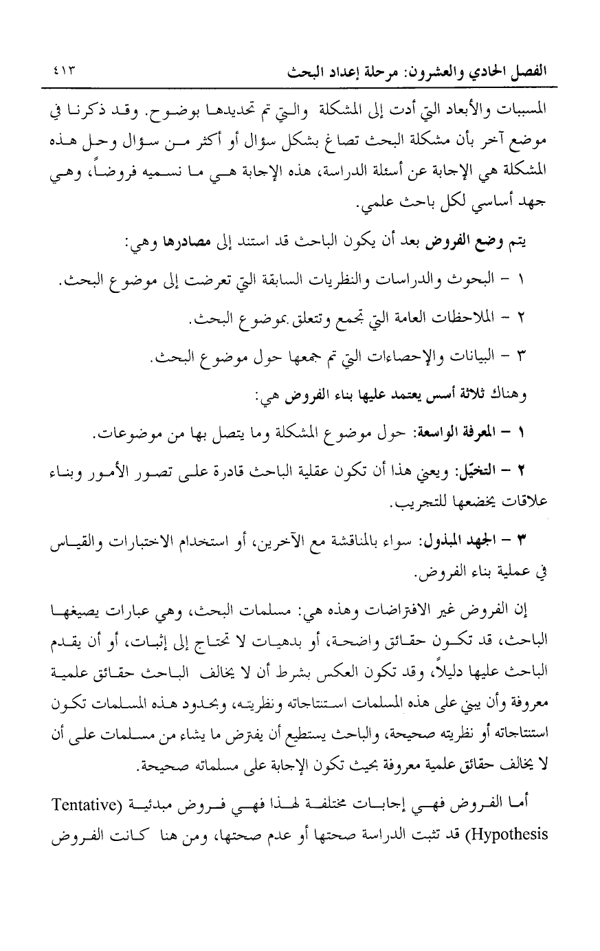 أما الفروض فهي إجابات مختلفة لهذا فهي فروض مبدئية "Tentative Hypothesis" قد تثبت الدراسة صحتها أو عدم صحتها، ومن هنا كانت الفروض.