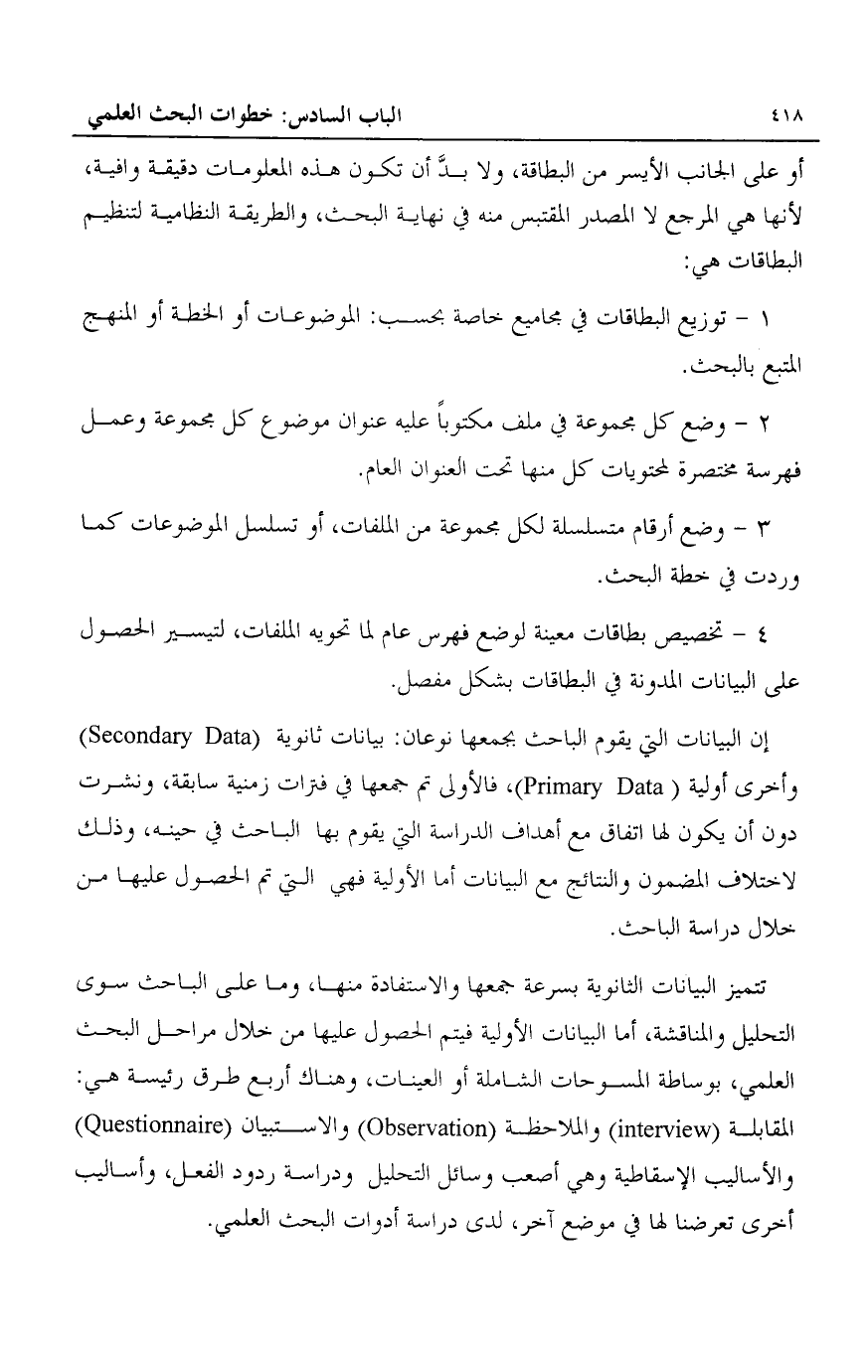 أو على الجانب الأيسر من البطاقة، ولا بد أن تكون هذه المعلومات دقيقة وافية، لأنها هي المرجع لا المصدر المقتبس منه في نهاية البحث، والطريقة النظامية لتنظيم البطاقات هي: