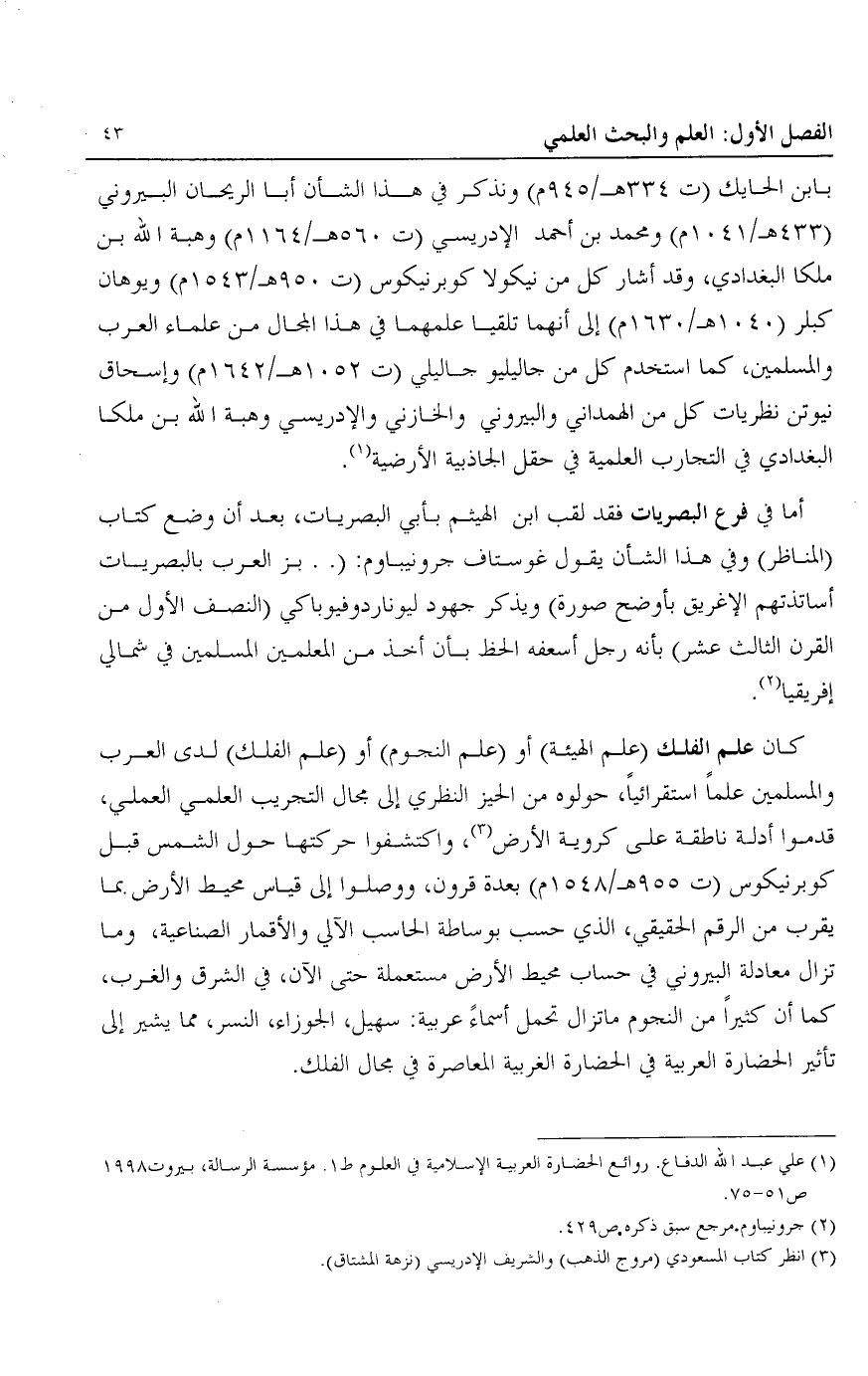 1 على عبيد الله الدفاع. روائع الحضارة العربية الإسلامية في العلوم ط1. مؤسسة الرسالة، بيروت 1998 ص51-75.