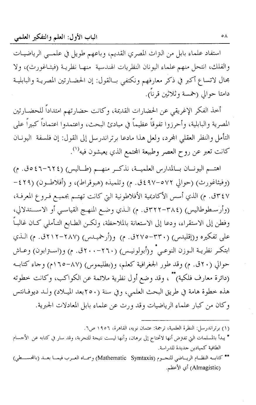 1 براتراندرسل: النظرة العلمية، ترجمة: عثمان نويه، القاهرة، 1956 ص6.