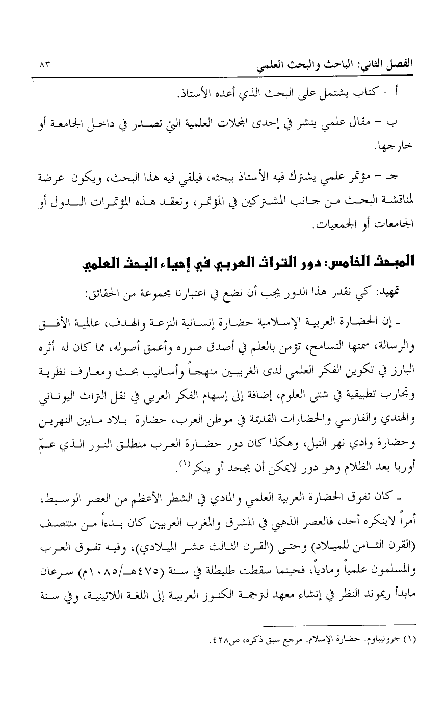 المبحث الخامس: دور التراث العربي في إحياء البحث العلمي