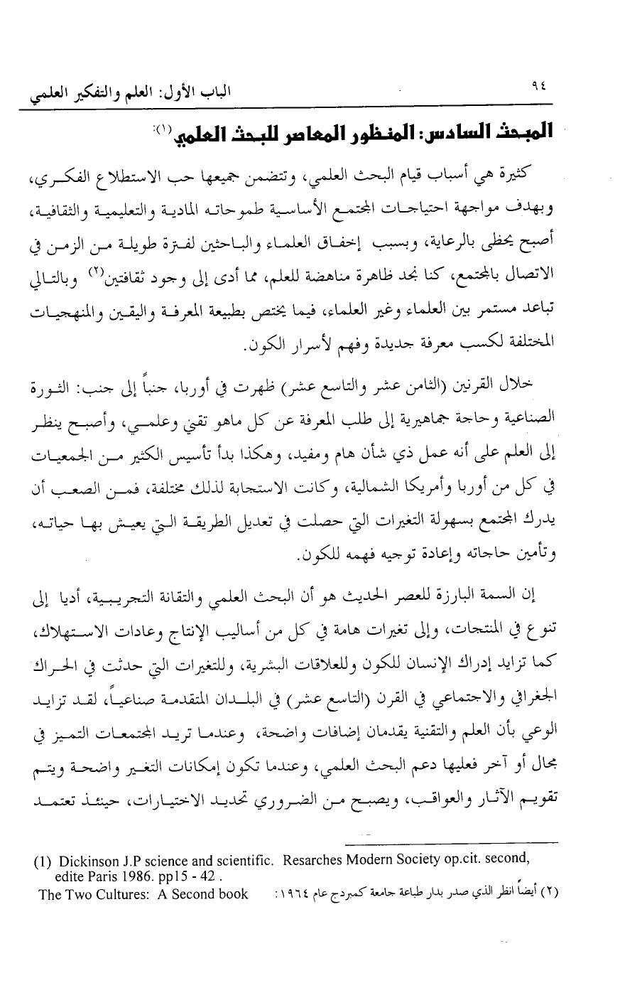 1 Dickinson J.p Science and Scientific. Resarches Modern Society op. cit. Second Edite Paris 1986. pp 15- 42.