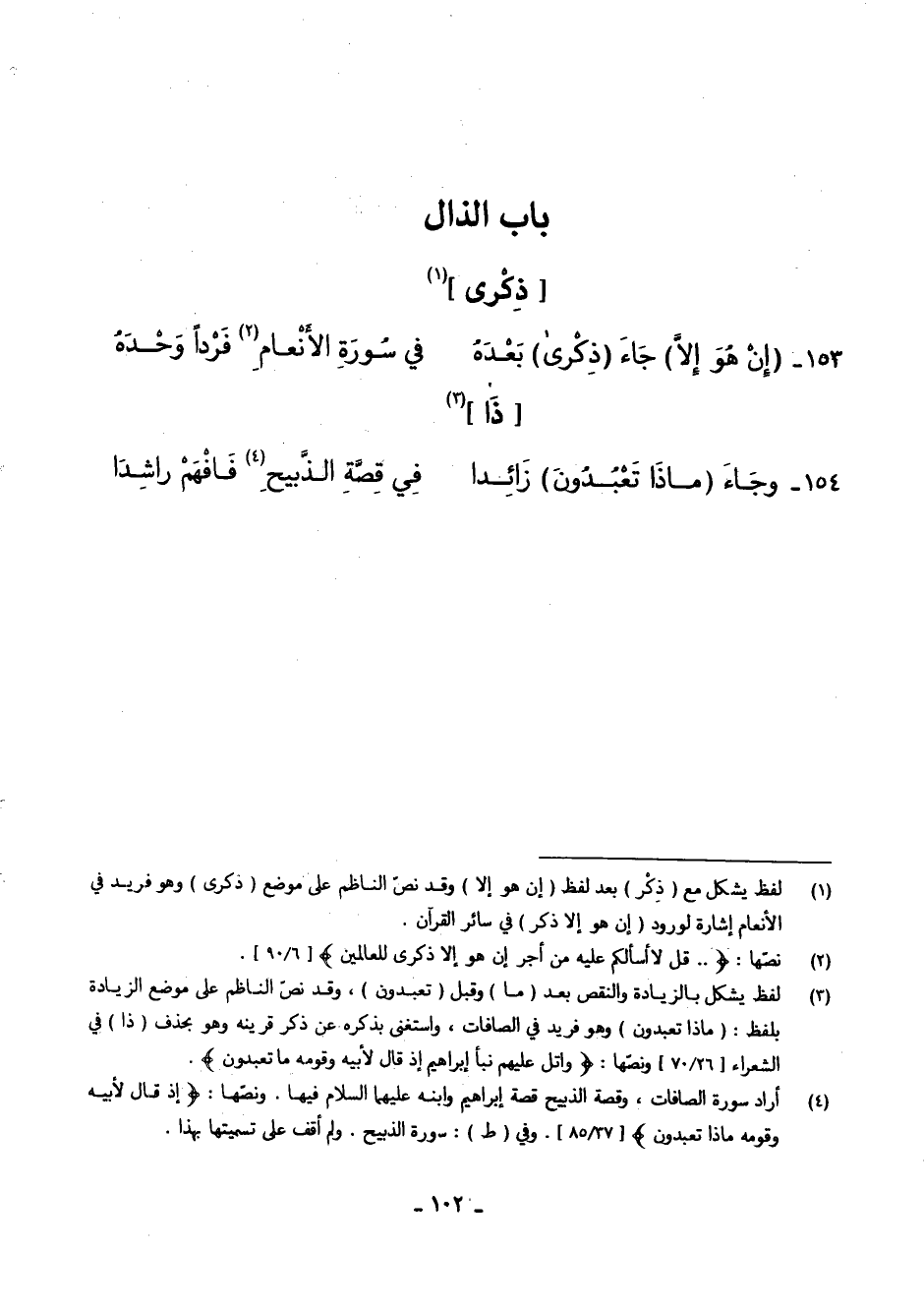 154 - وَجَاءَ (مَاذَا تَعْبُدُونَ) زَائِدَا ... فِي قِصَّةِ الذَّبِيحِ فَافْهَمْ رَاشِدَا