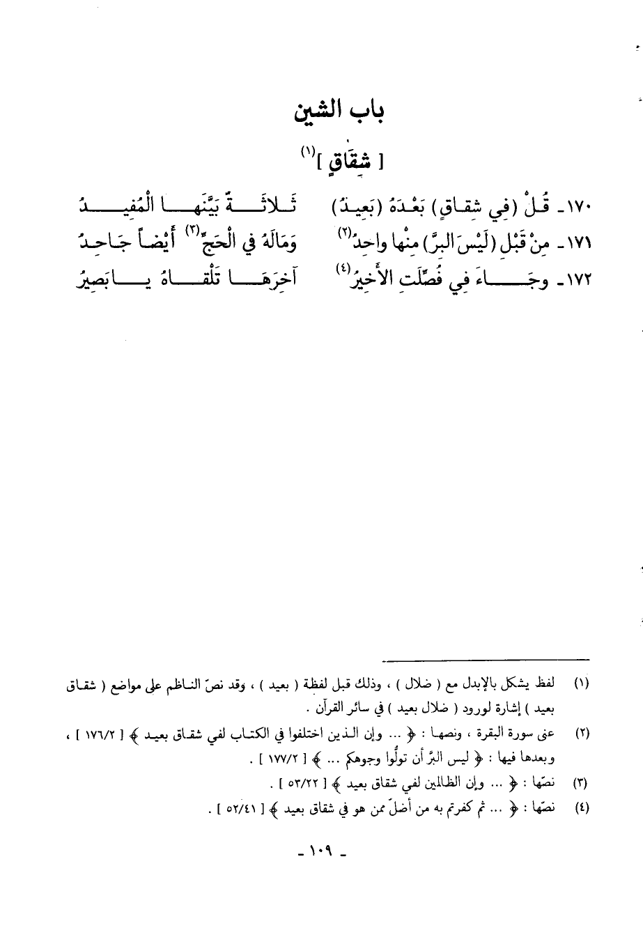 170 - قُلْ (فِي شِقَاقٍ) بَعْدَهُ (بَعِيدُ) ... ثَلاثَةٌ بَيَّنَهَا الْمُفِيدُ