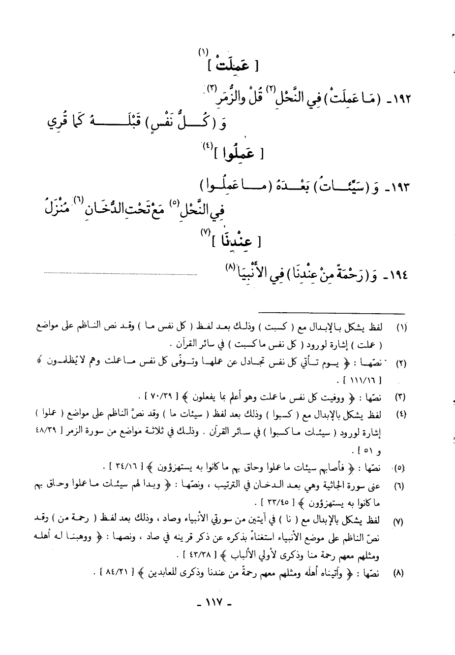 192 - (مَا عَمِلَتْ) فِي النَّحْلِ قُلْ وَالزُّمَرِ ... وَ (كُلُّ نَفْسٍ) قَبْلَهُ كَمَا قُرِي