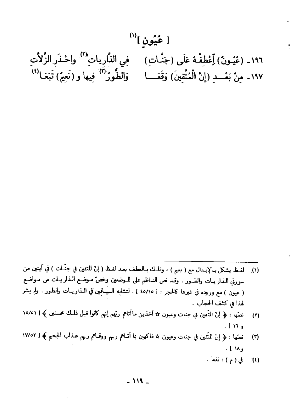 196 - (عُيُونٌ) اعْطِفْهُ عَلَى (جَنَّاتِ) ... فِي الذَّارِيَاتِ وَاحْذَرِ الزَّلاتِ