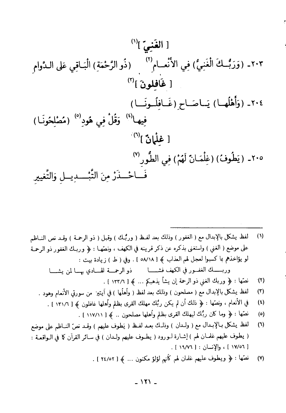 203 - (وَرَبُّكَ الْغَنِيُّ) فِي الأنْعَامِ ... (ذُو الرَّحْمَةِ) الْبَاقِي عَلَى الدَّوَامِ