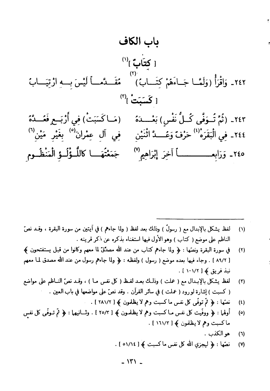 243 - (ثُمَّ تُوَفَّى كُلُّ نَفْسٍ) بَعْدَهُ ... (مَا كَسَبَتْ) فِي أَرْبَعٍ فَعُدَّهُ