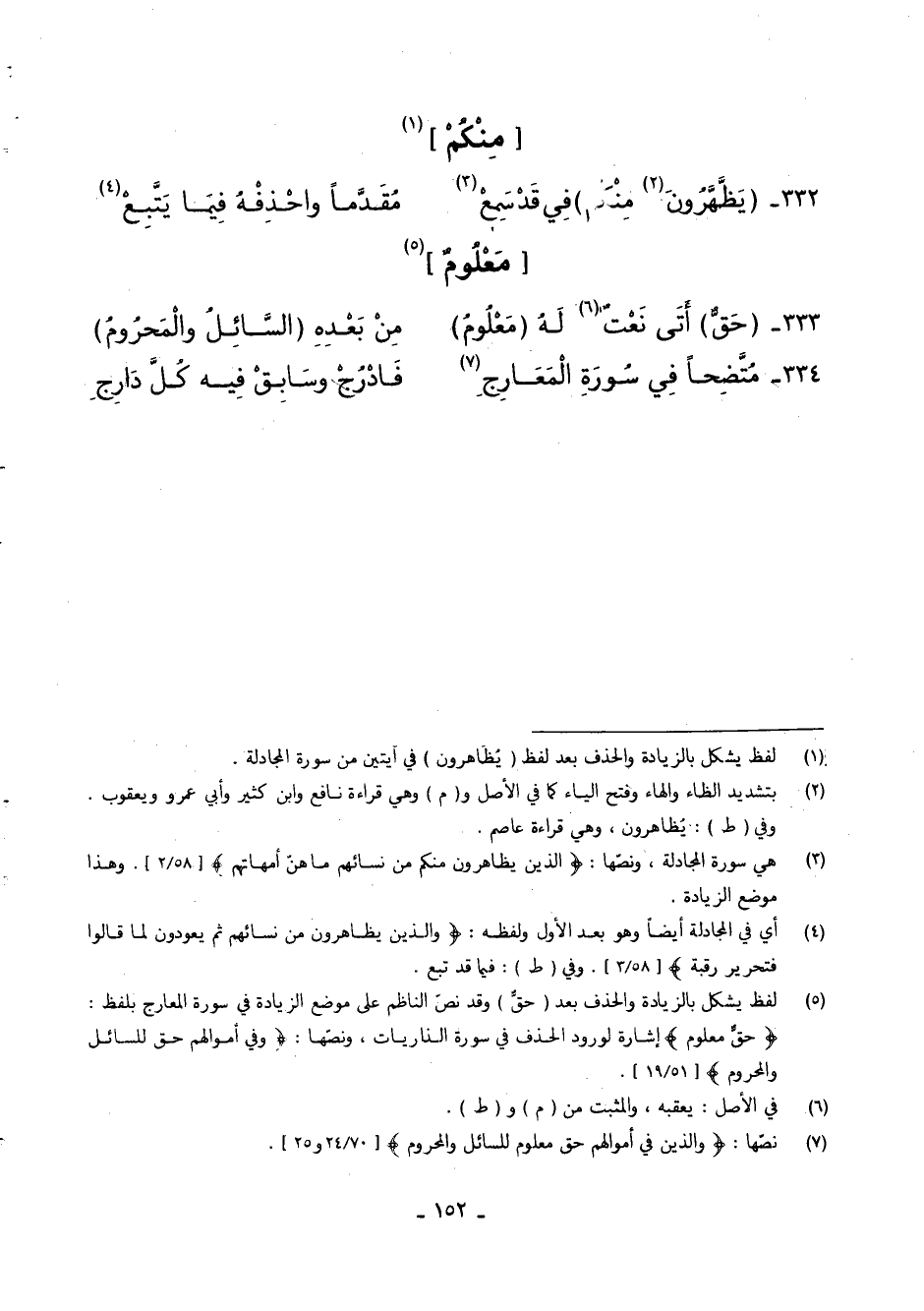333 - (حَقٌّ) أتَى نَعْتٌ لَهُ (مَعْلُومُ) ... مِنْ بَعْدِهِ (السَّائِلُ وَالْمَحْرُومُ)