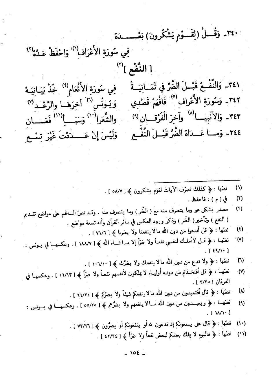 341 - وَالنَّفْعُ قَبْلَ الضَّرِّ فِي ثَمَانِيَةْ ... فِي سُورَةِ الأنْعَامِ خُذْ بَيَانِيَهْ