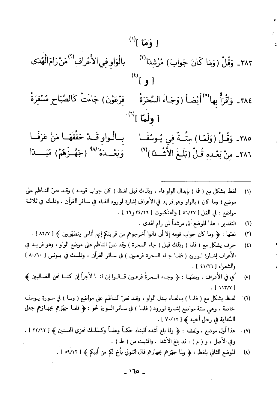385 - وَقُلْ (وَلَمَّا) سِتَّةٌ فِي يُوسُفَا ... بِالْوَاوِ قَدْ حَقَّقَهَا مَنْ عَرَفَا