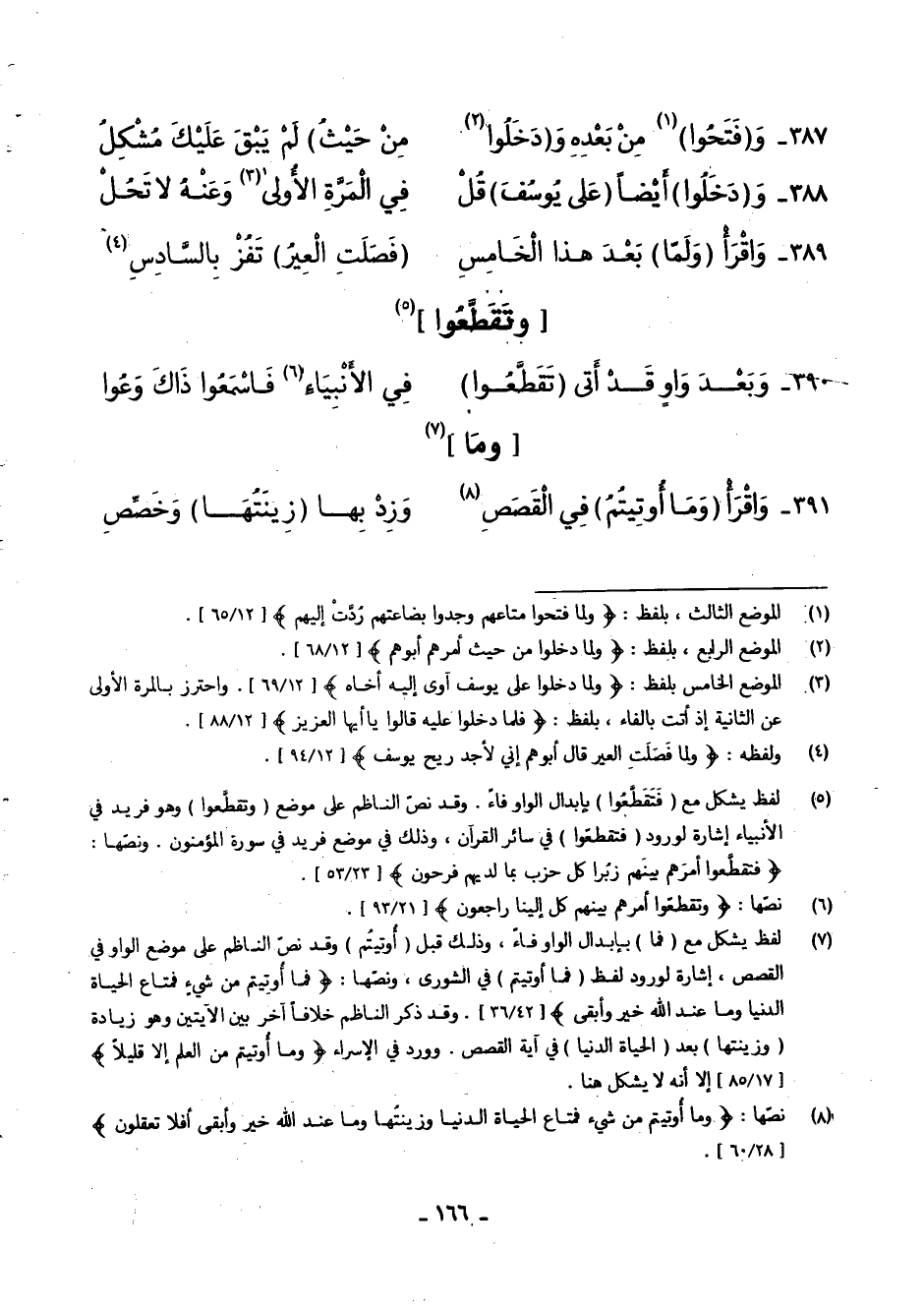 390 - وَبَعْدَ وَاوٍ قَدْ أتَى (تَقَطَّعُوا) ... فِي الأنْبِيَاءِ فَاسْمَعُوا ذَاكَ وَعُوا