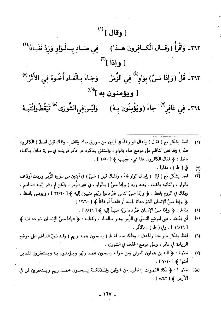 393 - قُلْ (وَإِذَا مَسَّ) بِوَاوٍ فِي الزُّمَرْ ... وَجَاءَ بِالْفَاءِ أَخُوهُ فِي الأثَرْ