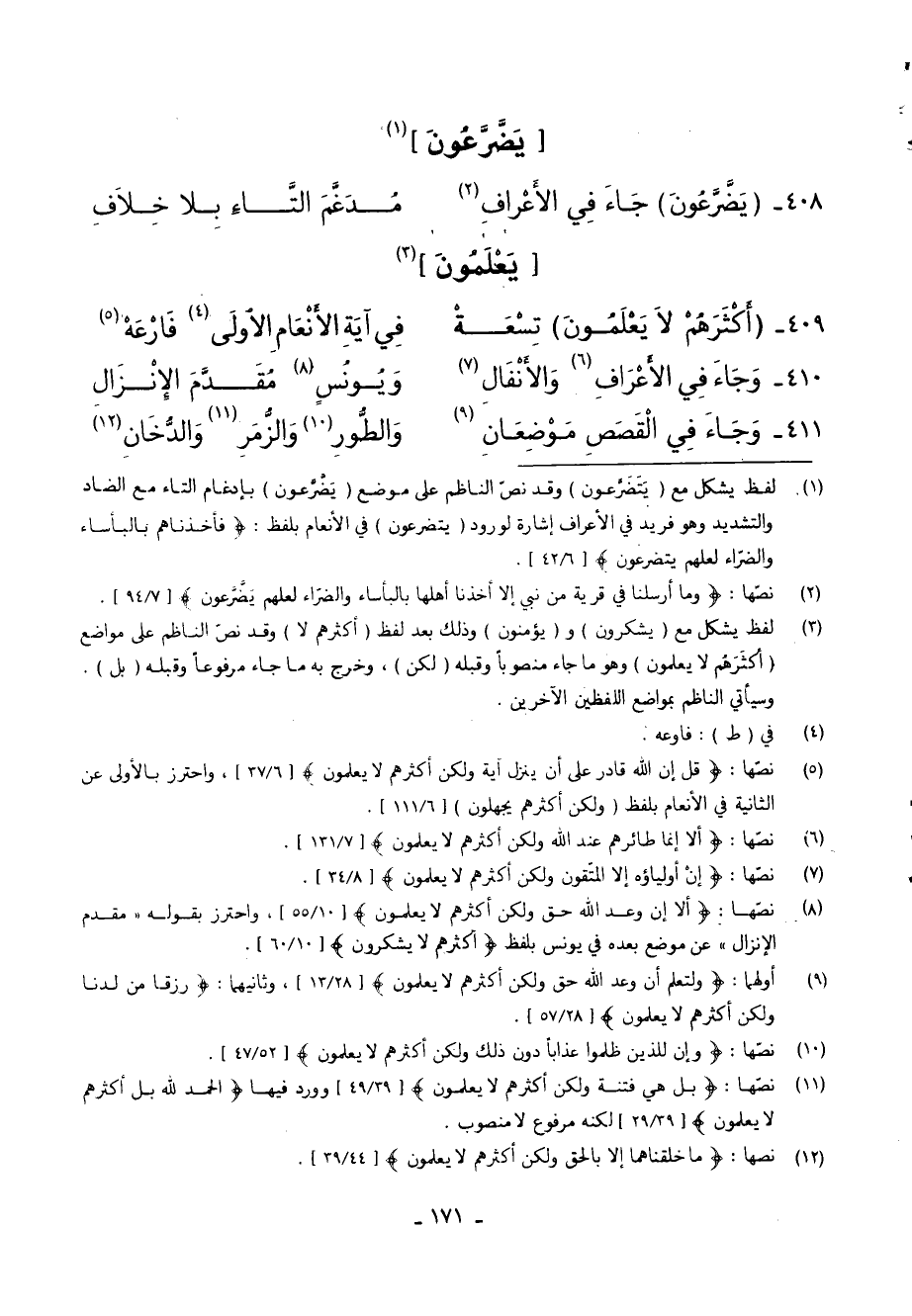 408 - (يَضَّرَّعُونَ) جَاءَ فِي الأعْرَافِ ... مُدَغَّمَ التَّاءِ بِلا خِلافِ