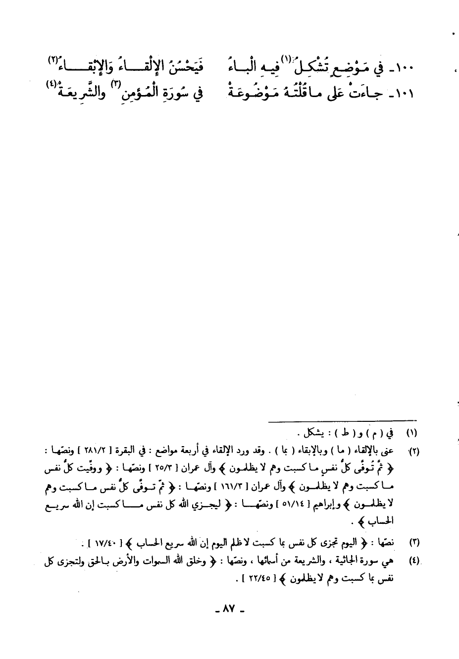 101 - جَاءَتْ عَلَى مَا قُلْتُهُ مَوْضُوعَةْ ... فِي سُورَةِ الْمُؤمِنِ وَالشَّرِيعَةْ