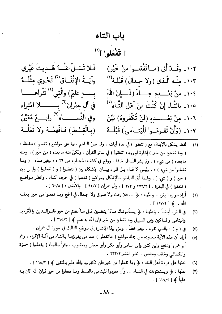 107 - (وَأَنْ تَقُومُوا لِلْيَتَامَى) قَبْلَهُ ... (بِالْقِسْطِ) فَافْهَمْهُ وَلا تَمَلَّهُ