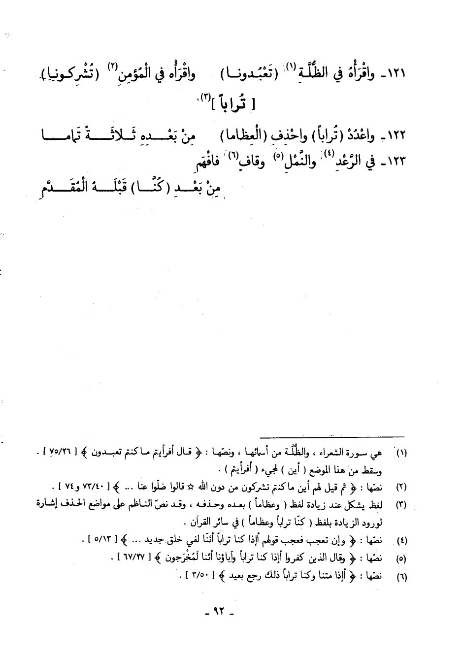122 - وَاعْدُدْ (تُرَابًا) وَاحْذِفِ (الْعِظَامَا) ... مِنْ بَعْدِهِ ثَلاثَةً تَمَامَا