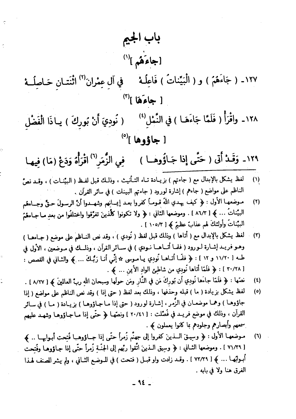 127 - (جَاءَهُمُ) وَ (الْبَيِّنَاتُ) فَاعِلُهْ ... فِي آلِ عِمْرَانَ اثْنَتَان حَاصِلُهُ