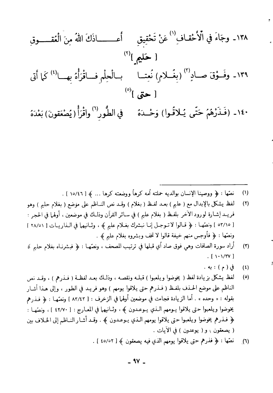 138 - وَجَاءَ فِي الأحْقَافِ عَنْ تَحْقِيقِ ... أَعَاذَكَ اللهُ مِنَ الْعُقُوقِ