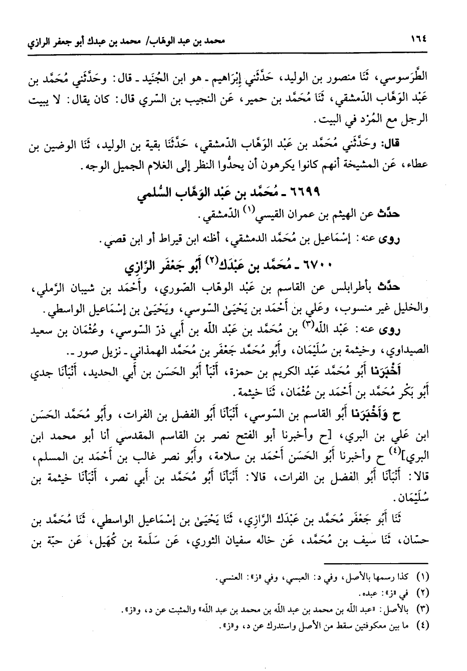 6699 - محمد بن عبد الوهاب السلمي حدث عن الهيثم بن عمران القيسي (1) الدمشقي روى عنه إسماعيل بن محمد الدمشقي أظنه ابن قيراط أو ابن قصي
