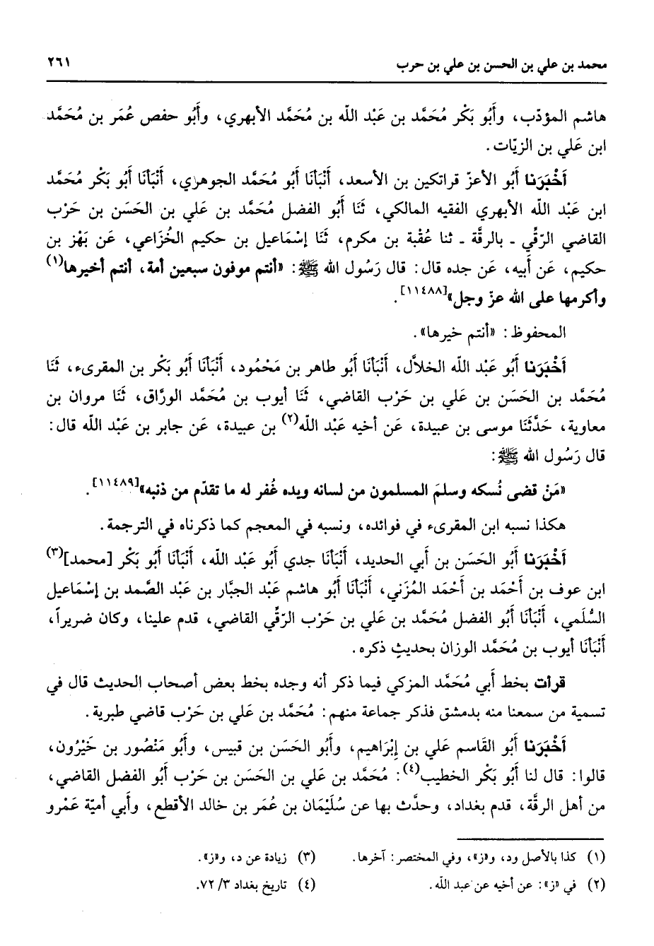 (4) تاريخ بغداد 3 / 72