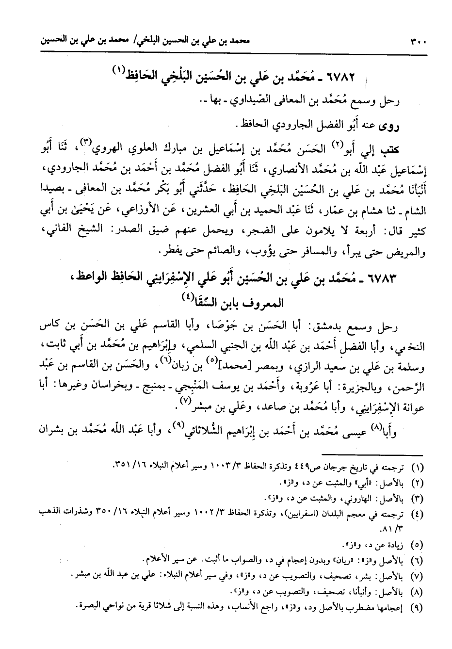 (4) ترجمته في معجم البلدان (اسفرايين) وتذكرة الحفاظ 3 / 1002 وسير أعلام النبلاء 16 / 350 وشذرات الذهب 3 / 81