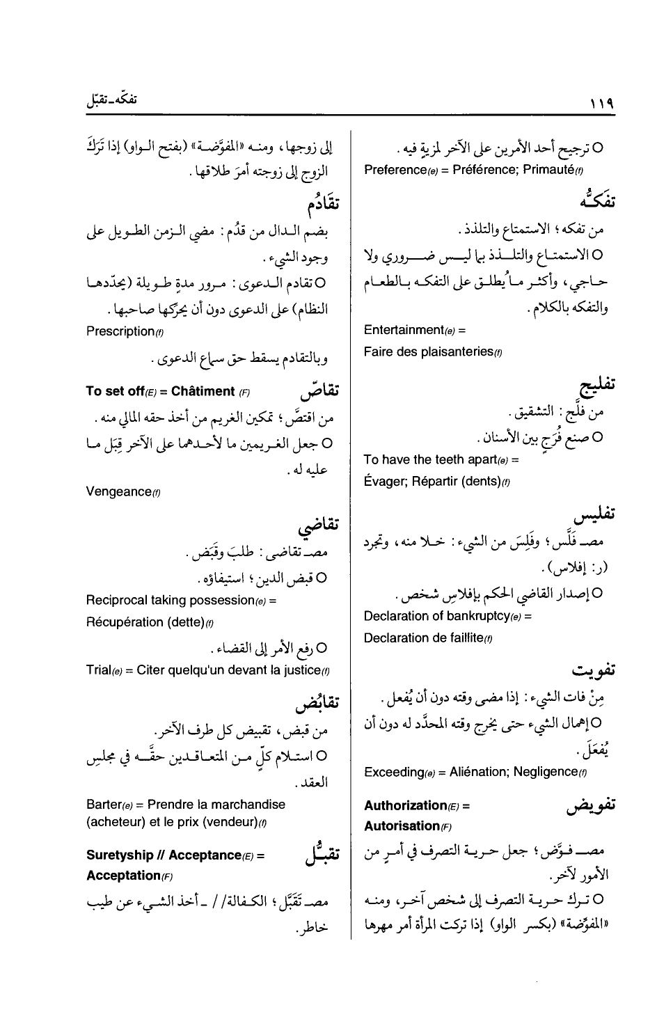 Social Security * التأمين: التبادلي: اتفاق جماعة من الناس يجمع بينها تماثل الاخطار على تعويض المصاب منهم مما يجبونه منهم، فان زاد مما جبوه شيئا رد عليهم، وإن نقص دفعوا مبلغا آخر حتى يسد النقص ... Reciprocal insurance التأوه: قول آه، آه من ألم ونحوه ... Groaning التأويل: مص أول، تقدير الكلام وتفسيره.