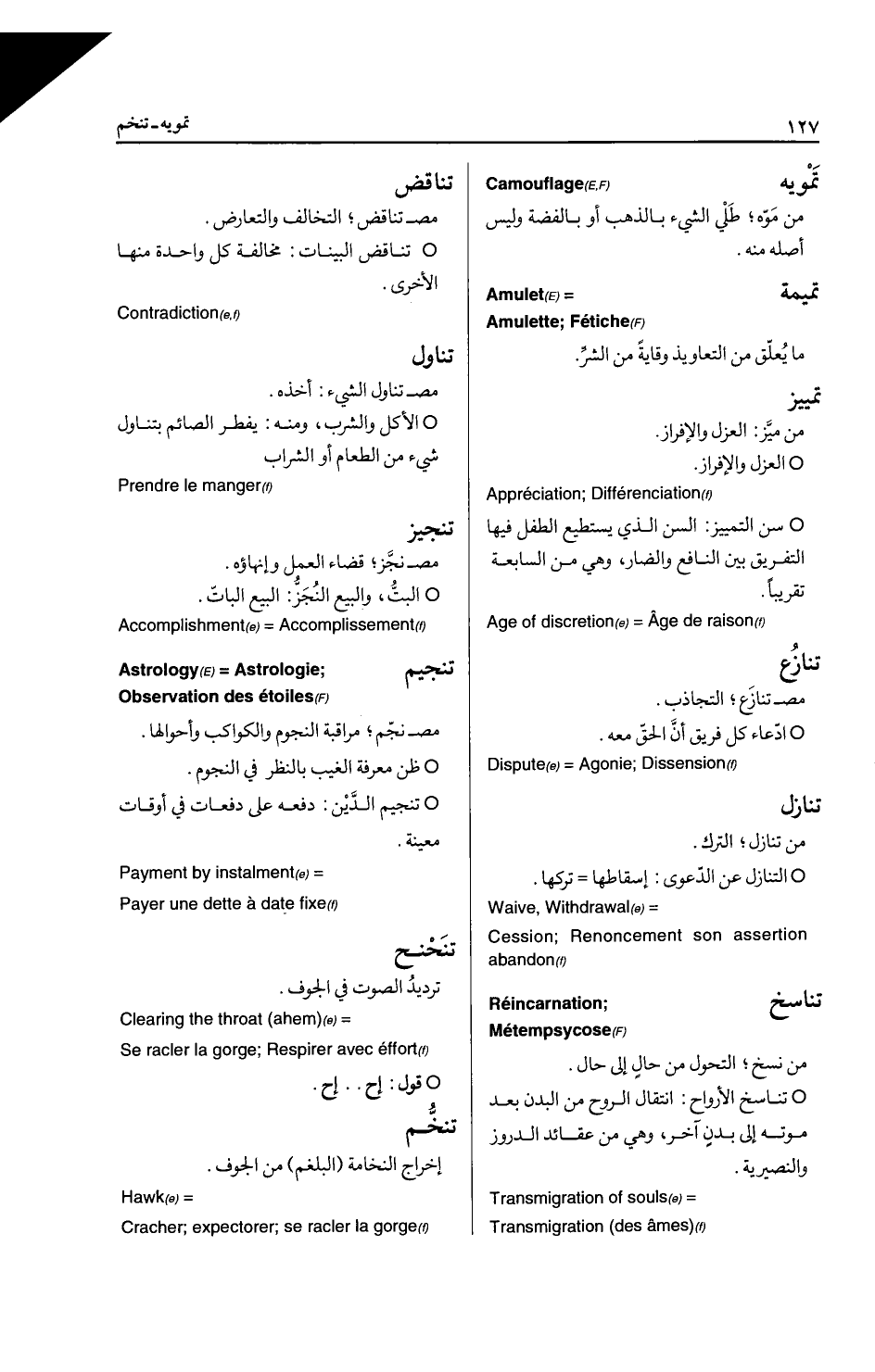 * ترتيل القرآن: التمهل في قراءته ... Orthoepy , Recitation الترجمة: مص ترجم، ج تراجم، ذكر سيرة الشخص وحياته ... Biography * نقل الكلام إلى لغة أخرى ... Translation