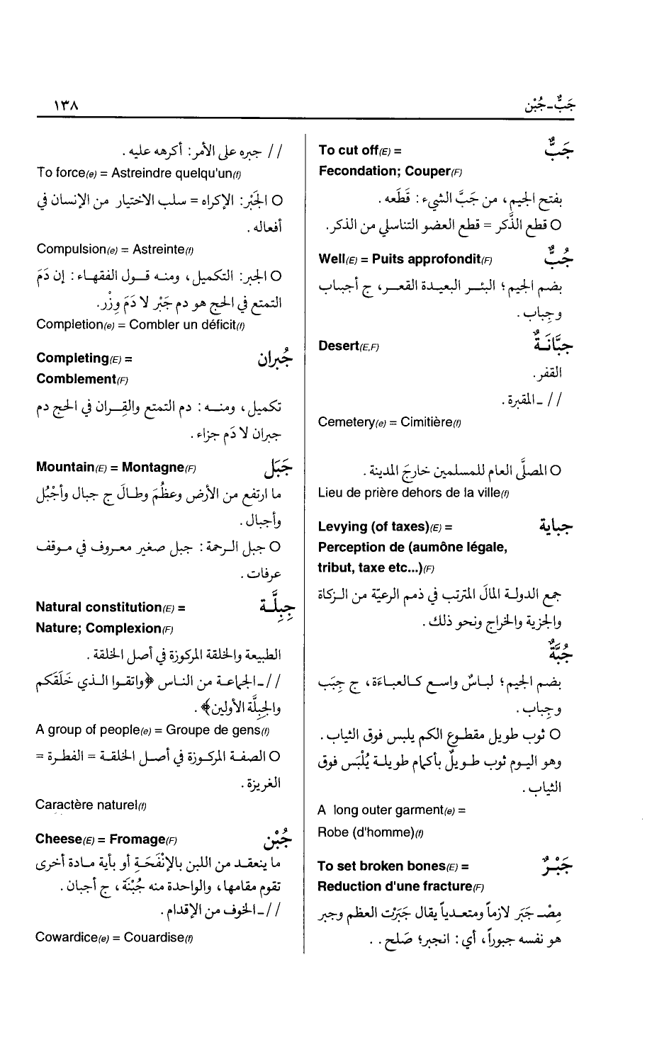 Thick * تغليظ اليمين: تشديدها إما باللفظ كقوله: والله العظيم الشديد العقاب، أو بالمكان كالتحليف عند الكعبة، أو بالزمان كالتحليف بعد الصلاة ... Strong oath) q , v , Solemn oath * تغليظ الدية: زيادتها إما بالصفة كما هو الحال في الابل، أو في العدد بايجاب دية وثلث الدية، ومنه: يجب في القتل شبه العمد دية مغلظة (ر: غلظ) التغوط: من تغوط، إخراج الفضلات - العذرة - من الدبر ... To ease nature التغيير: مص غير، التبديل والتحويل ... Changing * استبدال الشئ بغيره ... Replacement التفاوت: من تفاوت، الاختلاف.