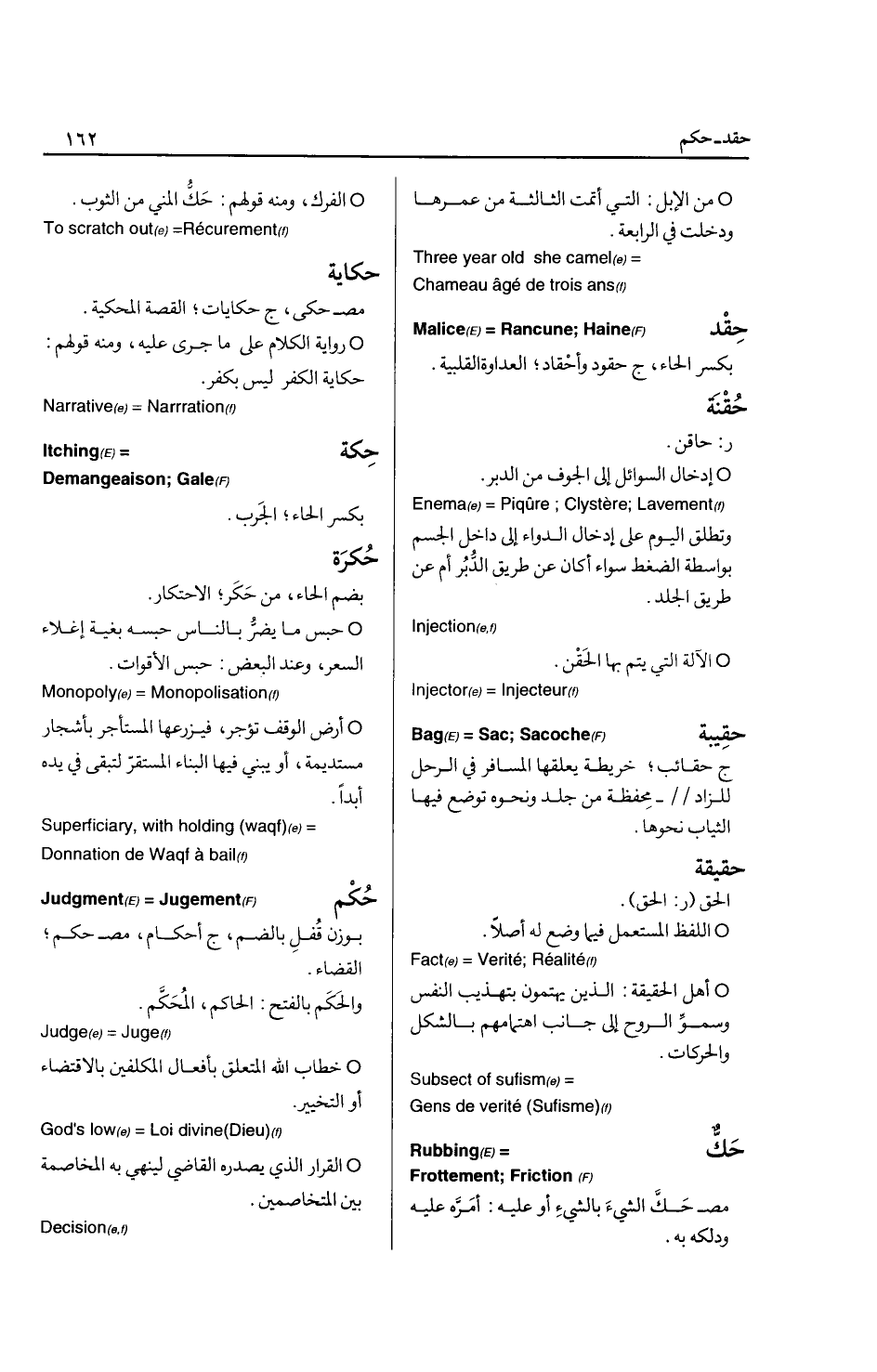 الجرح: بفتح الجيم: مص جرح، وبضم الجيم: الشق في البدن تحدثه آلة حادة، ج جروح وجراح ... Injury , wound * جراح الشاهد: الطعن فيه بما يرد شهادته ... To invalidate * جرح العضو: قطع اتصال اللحم فيه من غير تقيح، فإذا تقيح فهو القرحة وهو عند الفقهاء على أنواع: - الحارصة: وهي شق الجلد قليلا كالخدش من غير ظهور الدم ... A scratch skin , but brings no blood - الدامعة: وهي الجرح التي يظهر منها الدم دون أن يسيل عن محله - الدامية: وهي التي الظهر منها الدم ويسيل عن محله دون أن تقطع اللحم ... () Brings blood وهذه الجروح الثلاثة خاصة بالجلد لا تتعداه - الباضعة: هي التي تتعدى الجلد وتقطع اللحم.