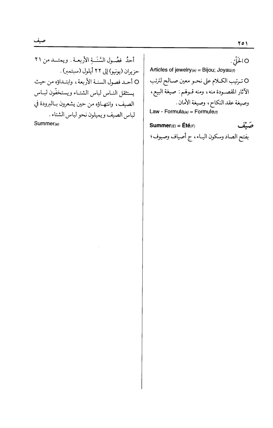 وقولهم: بين المطرقة والسندان، أي: بين أمرين كلاهما شر ... Anvil السهم: بفتح أوله وسكون ثانيه، ج سهام، القدح يلعب به في الميسر / / - عود يسوى في طرفه نصل ترميه القوس ... Arrow * الحصة والنصيب ... Share , portion السهو: بفتح أوله وسكون ثانيه مص سها، الغفلة، والفرق بين السهو والنسيان، ففي السهو تزول الصورة عن الفكر مع بقائها في الحافظة، أما في النسيان فإنها تزول من الفكر والحافظة معا " ... Forgetfulness السوءة: بفتح السين وسكون الواو، ج سوءات، العورة ... Shame * السوءتان: القبل والدبر ... Private parts of body السواد: خلاف البياض ... Blackness * القرى، وسواد العراق: ما بين الكوفة والبصرة وما حولهما من القرى والرساتق، وسمي سوادا لخصبه، فالزرع من الخصوبة يكون أخضر داكنا يميل إلى السواد.