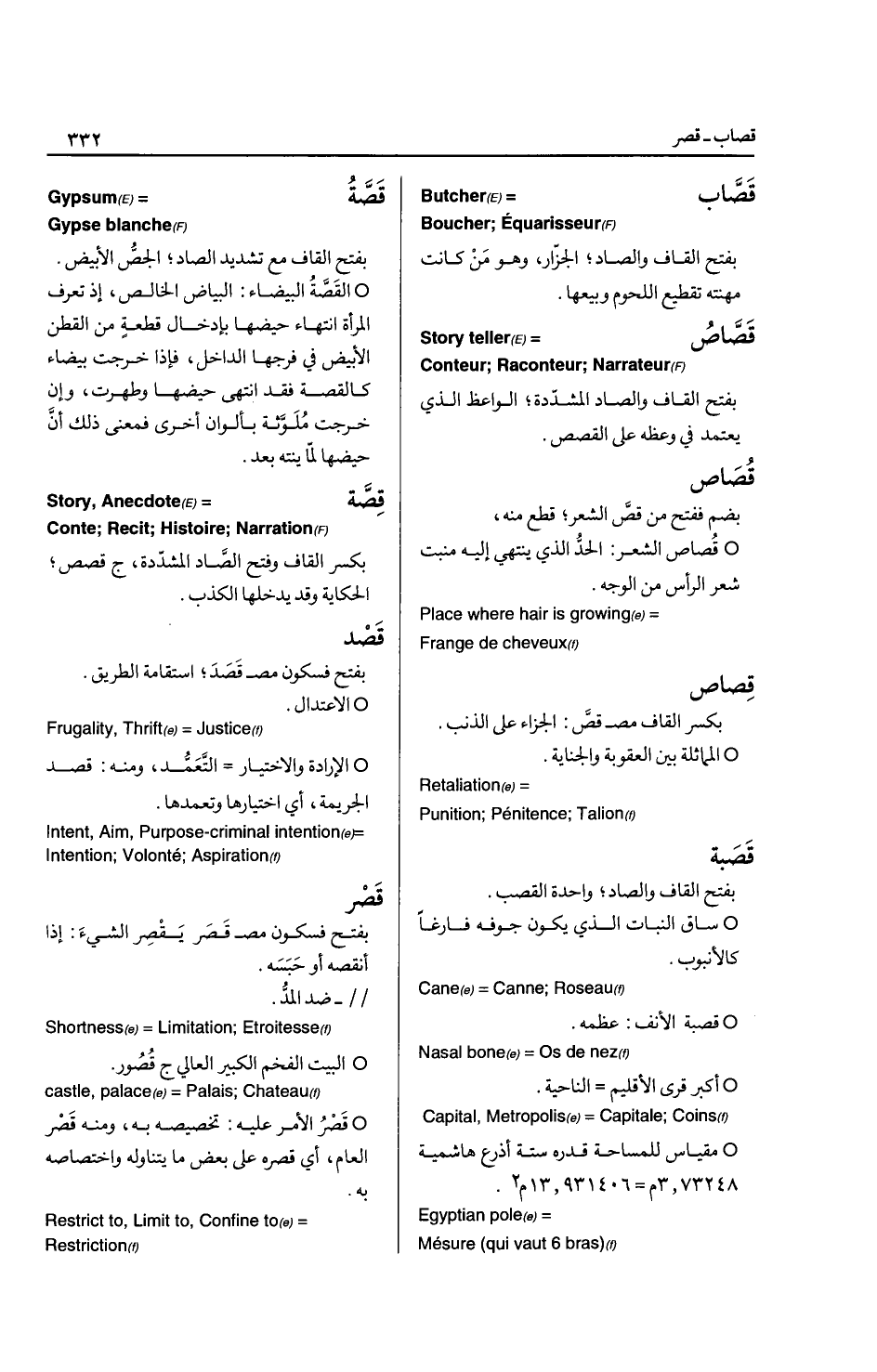 ويعي ما يقول ... Wrath * الغضب الذي يغيب فيه العقل ويفقد معه الانسان التحكم بالنفس والتصرفات ولا يعلم ما يقول وهذا النوع يسقط ترتب الاثار على التصرفات القولية ... Passion الغطارفة: نوع من النقود، كانت من أعز النقود في بخارى، ... Kind of coins نسبة إلى غطريف أمير خراسان أيام الرشيد ... (Noble) lord الغطس: مص غطس في الماء: الانغماس فيه ... Diving غفا: بالتحريك يغفو غفوا وغفوا: نام قليلا، نعس ... Doze , asleep الغفلة: بفتح فسكون مص غفل، تخلف الذكاء وقلة الفطانة.