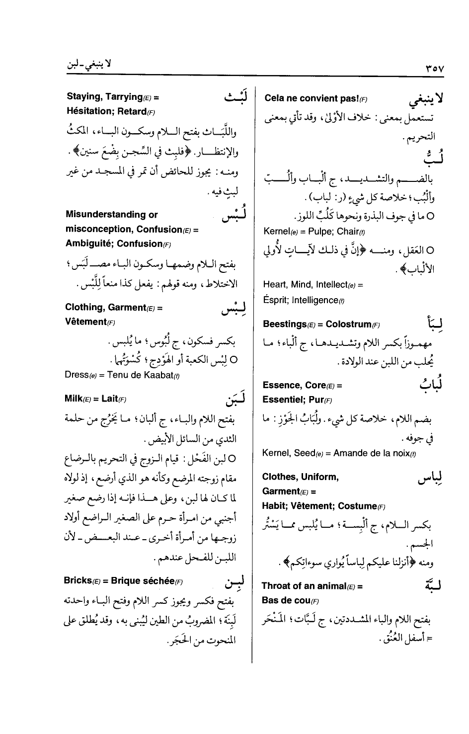وتخضع لرئيس واحد، لها عادات وأعراف خاصة ... Tribe القتال: بكسر القاف مص قاتل، الحرب والمدافعة بالسلاح ... Fighting القترة: بفتح القاف والتاء، الغبار ومنه * (ترهقها قترة) * ... Dust القتل: بفتح فسكون، الاماتة وإزهاق الارواح ... Killing وهو على أنواع: * القتل العمد: ويكون بتعمد الضرب بالسلاح أو ما أجري مجرى السلاح، وعند بعضهم بما يقتل به غالبا ... Intentional killing * القتل شبه العمد: ويكون بتعمد الضرب بما يقتل به غالبا Quasi - intentional killing * القتل الخطأ: أن يقصد الضرب ولا يقصد المضروب، كأن.