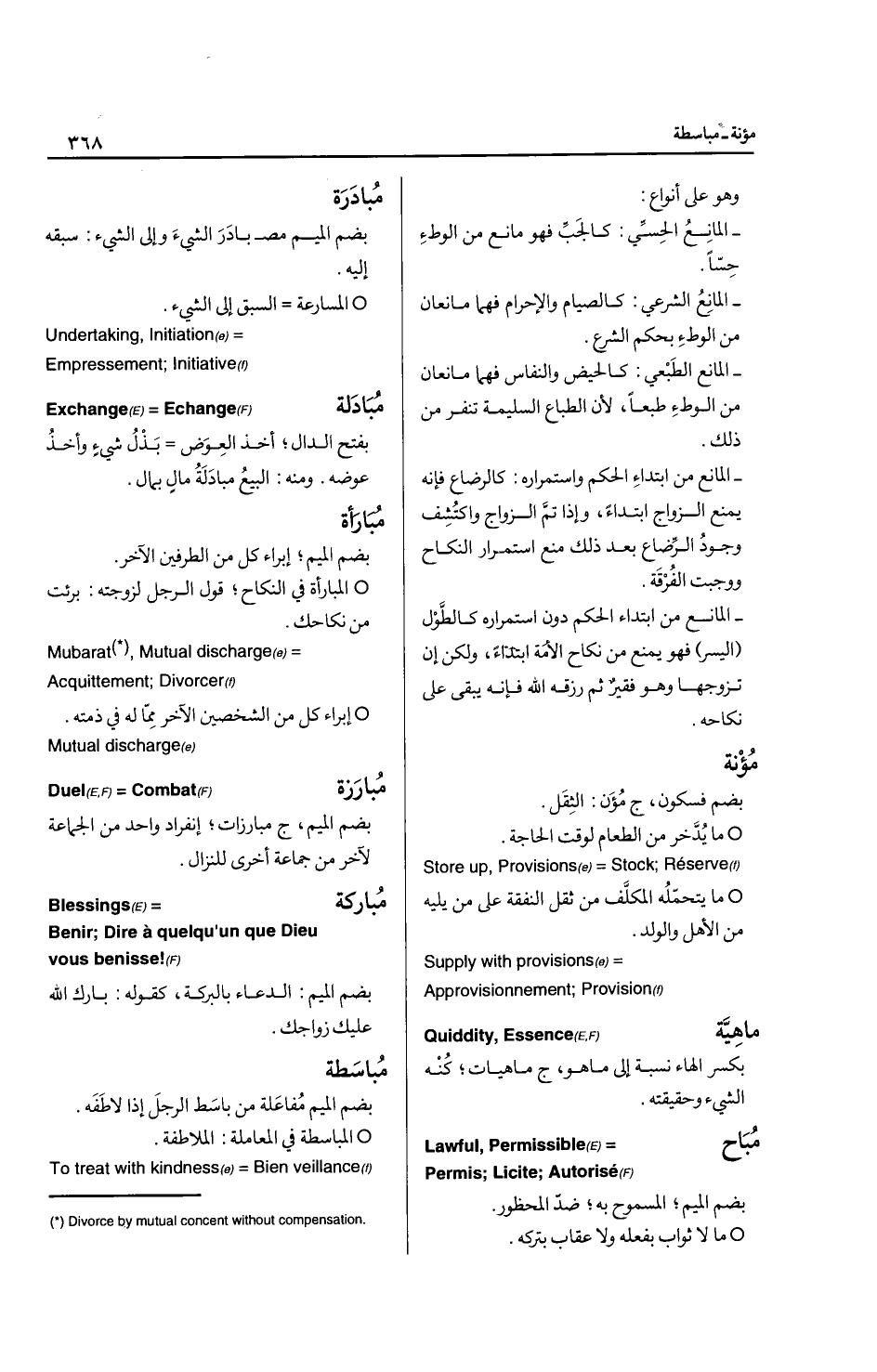 القفر: بفتح فسكون من قفر ج قفار وقفور، المكان الذي لا ماء فيه ولا نبات ولا إنسان ... (Desert) without water or vegetation * دار قفر: خالية لا ساكن فيها ... (Vacant , deserted) town القفل: بضم فسكون من قفل الباب وأقفله: أغلقه، والقفل جهاز يغلق به الباب ويفتح بالمفتاح، ج أقفال وقفول ... Lock , bolt القفول: بالضم مص قفل فلان من السفر يقفل ويقفل قفلا وقفولا: رجع (ر: قافلة) ... Returning القفية: بفتح وكسر مع تشديد الياء (ر: قفا) .