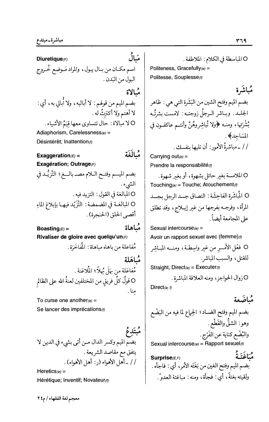 القلم: بفتح فسكون مص قلم العود إذا أخذ منه شيئا " وقلم الاظفار: قص أطرافها ... Paring , triming القلنسوة: بفتح القاف والواو وسكون النون وضم السين وفيها لغات أخرى منها قلنسية ج قلانس، نوع من ملابس الرأس، تكون على هيئات متعددة، ومنها ما يلبسه بعض كهنة النصارى ... Cap , hat , Bonnet القلوص: بفتح فضم ج قلائص وقلاص وقلص وقلصان من الابل: الشابة = الانثى من الابل من حين تركب إلى التاسعة من عمرها، ثم تكون بعد ذلك ناقة.