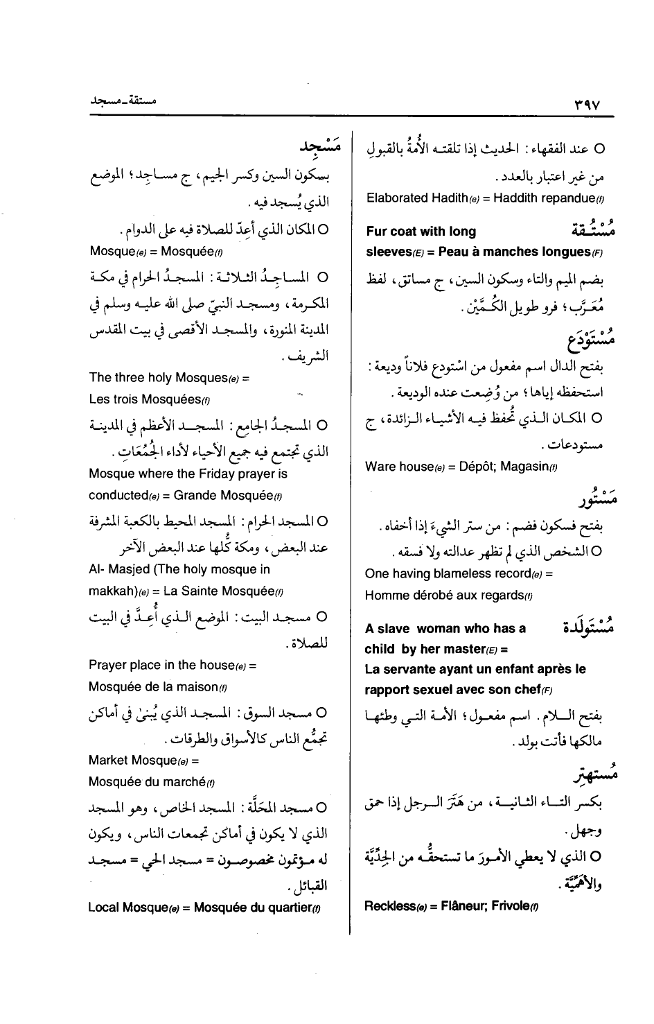 Movables * مال غير منقول: مالا ينقل ولا يحول في العادة كالارض وما اتصل بها اتصال قرار كالبناء والاشجار = مالا يمكن نقله وتحويله إلا بالنقض ... immovables المؤلفة قلوبهم: من يعطون من الزكاة كسبا لودهم أو شراء لاخلاصهم لحاجة الاسلام إليهم ... The people with reconciled heart المأمومة: ج مأموت، وتسمى أيضا الامة ج أوام.