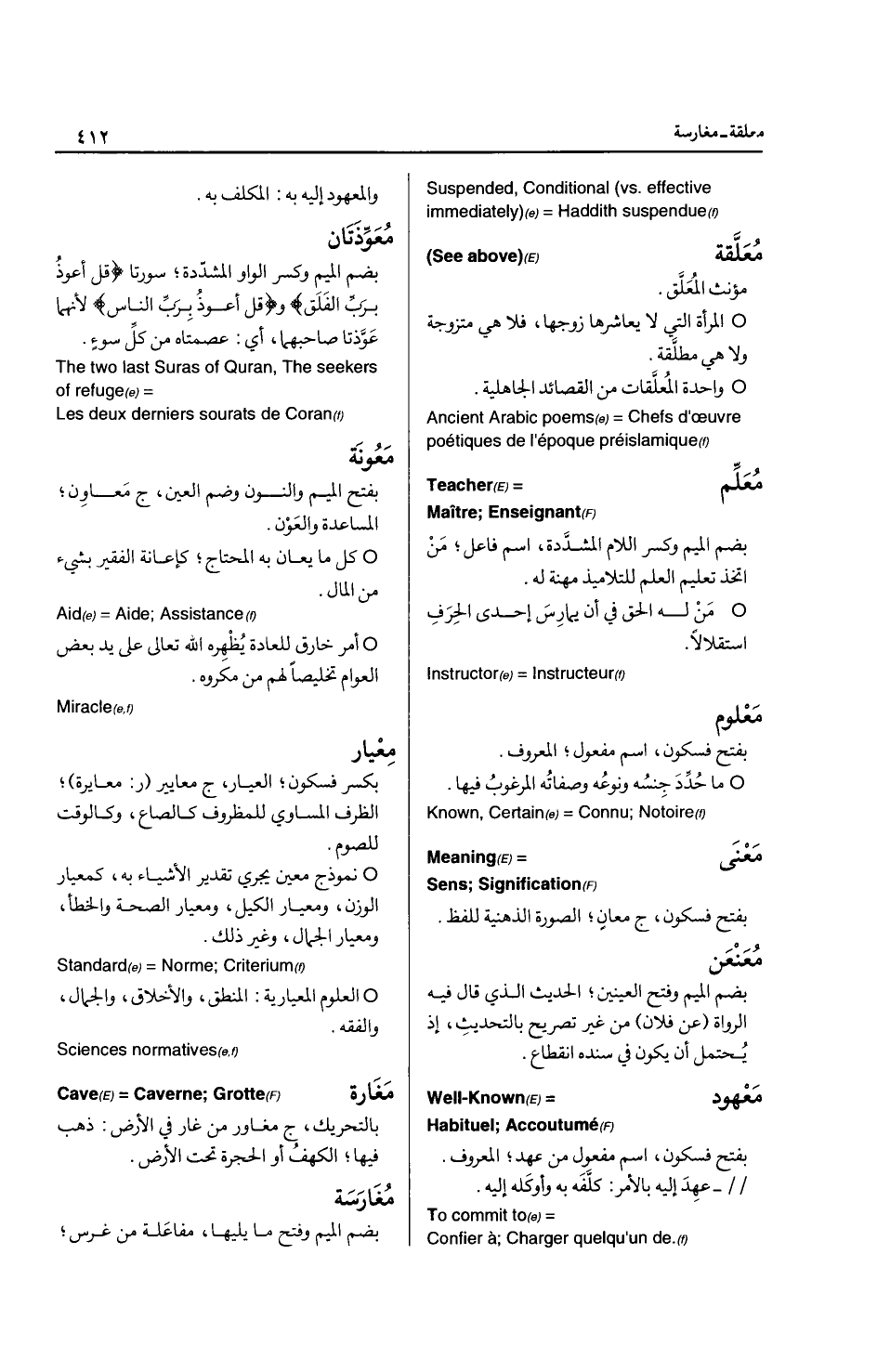 ومنه محضر الجلسة كذا، ومحضر الضبط ... Minutes , record المحضر: بضم فسكون فكسر اسم فاعل، الشخص المكلف بتبليغ وجوب الحضور إلى المحكمة ... Court usher المحطة: بالتحريك والتشديد ج محاط ومحطات، مكان التوقف، ومحطة القطار: مكان توقفه ... Station المحظور: بفتح فسكون فضم، المحرم خلاف المباح، ومنه * (وما كان عطاء ربك محظورا) *.
