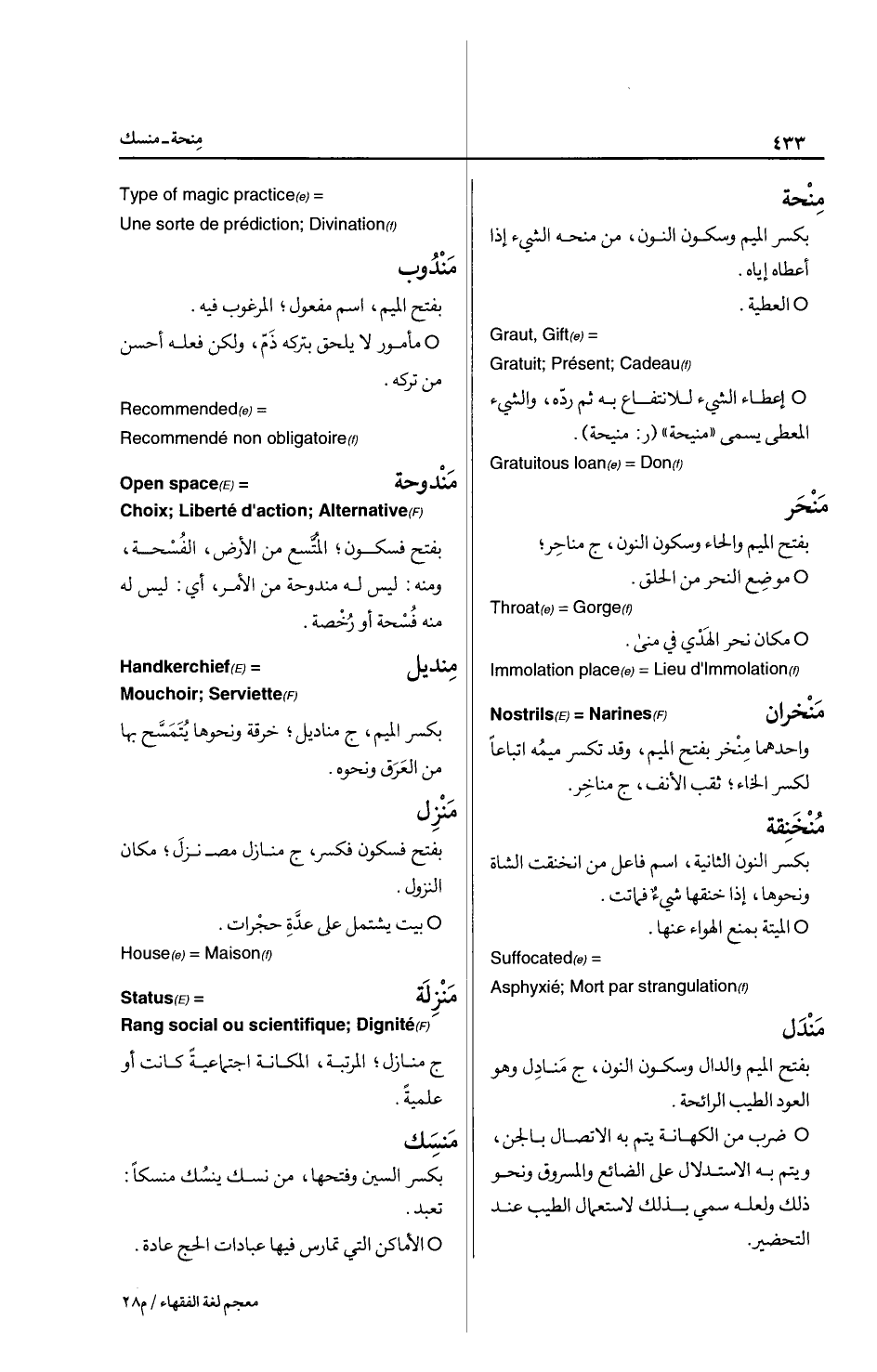 المصباح: بكسر فسكون ج مصابيح، السراج ونحوه ... Lamp المصحف: بتثليث الميم اسم مفعول ج مصاحف، كتاب يضم مجموعا من الصحف.