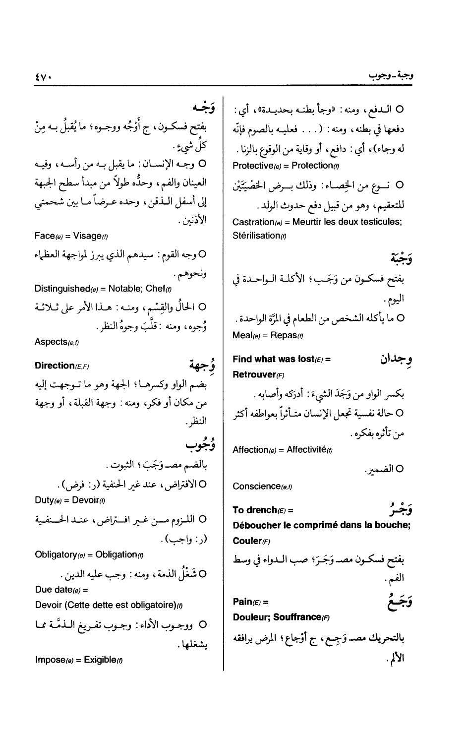 ومنه: * (وإن كان ذو عسرة فنظرة إلى ميسرة) * ... Comfort الميقات: ج مواقيت (ر: مواقيت) ، المكان الذي لا يجوز لافاقي حاج ولا معتمر أن يتجاوزه إلا بإحرام ... Appointed time and place الميل: بالكسر ج أميال: مقدار مد البصر.