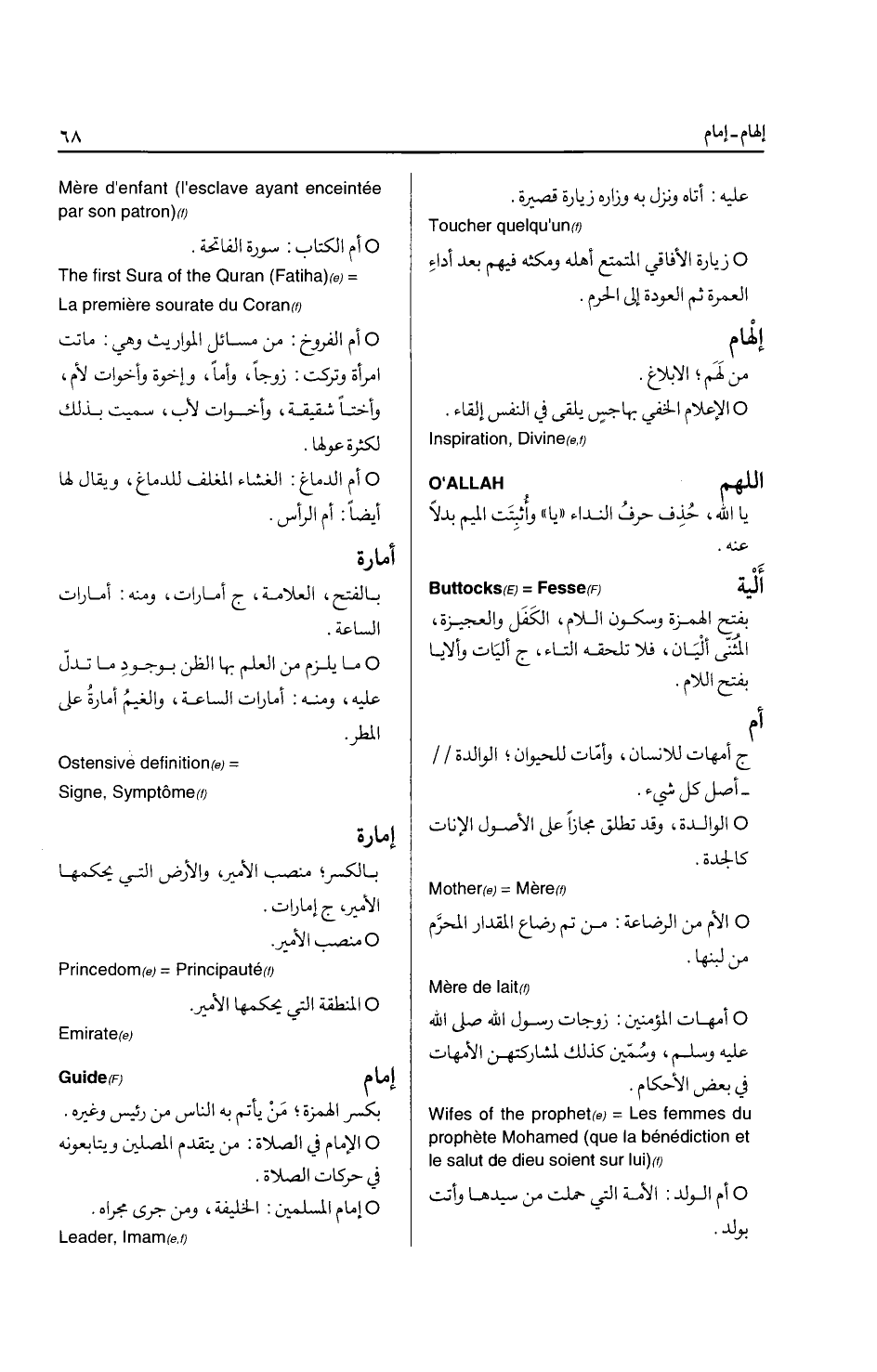وهو الكفر بعينه ... Ismaelites الاسهام: الاشتراك / / - ضرب القرعة ... Particpation * جعل الشئ صاحب حصة، يقال أسهم له بألف، أي: أعطاه ألفا " ... To give a share * الاقراع ومنه قولهم: أسهم بينهم إذا أقرع بينهم ... To draw lots الاشارة: العلامة ... Signal / / - تعيين الشئ باليد ونحوها ... Point to * إقامة الحركة مقام النطق في التعبير، ومنه: إشارة الاخرس ... Gesture * إشارة النص: المعنى المستنبط من النص، الذي لم يرد النص من أجله، ويسمى فحوى الخطاب ... Hint , Conclusive act الاشاعة: من شيع، الذيون والانتشار ... Spreading * اشاعة الخبر: إيصاله إلى سمع كل الناس ... (Circulation) of news * انتشار كلام لا أصل له ... Rumour الاشتباك: الاختلاط والتلاحم ... ENtanglement