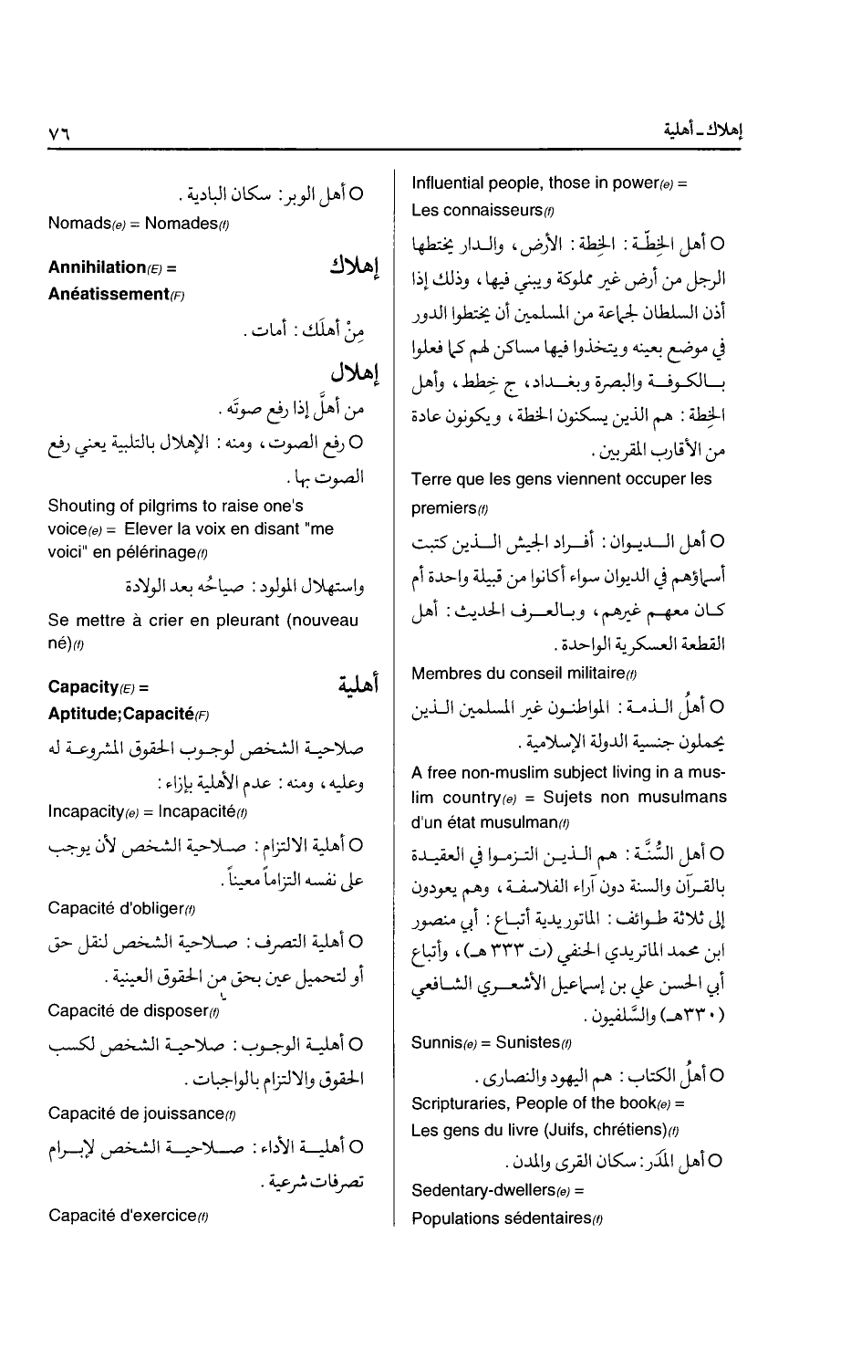* المكث في المسجد بنية القربة ... Prayer in Seclusion , Retiring in to a mosque for devotion الاعتماد: من عمد، الاستناد إلى الشئ / / - الركون إلى الشئ ومنه: الاعتماد على النفس ... Reliance * اعتماد القرار: إمضاؤه وجعله صالحا " للتنفيذ = الموافقة عليه..Credence الاعتياض: من عوض، أخذ العوض وهو البدل ... Compensation , Substition الاعجاب: من عجب، السرور بالشئ والاعجاب بالنفس الترفع والتكبر.